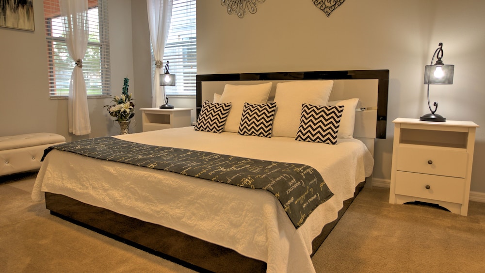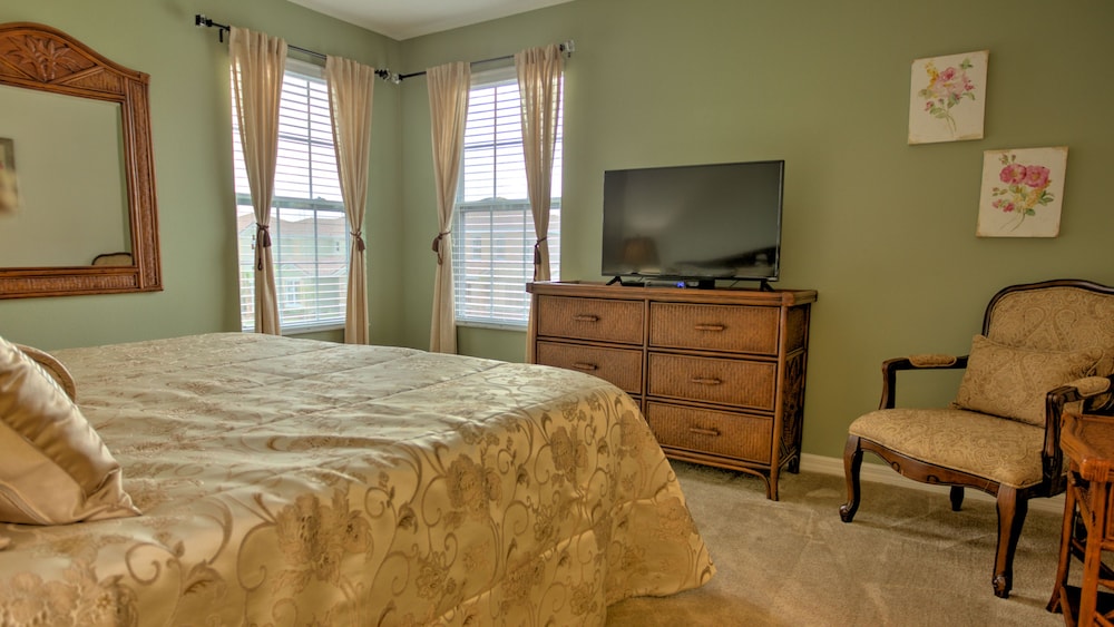 With a stay at this vacation home in Davenport (Solterra Resort), you'll be within a 15-minute drive of Reunion Resort Golf Course and Mystic Dunes Golf Club. This family-friendly vacation home is 10.4 mi (16.7 km) from Walt Disney World® Resort and 11.8 mi (19 km) from Old Town. Treat yourself to a stay in this individually decorated vacation home, which features a private pool and a flat-screen TV. A kitchen is outfitted with a full-sized refrigerator/freezer, an oven, and a stovetop. Cable programming and a DVD player are provided for your entertainment, while complimentary wireless internet access keeps you connected. Conveniences include a desk and a separate sitting area, and you can also request an iron/ironing board. Distances are displayed to the nearest 0.1 mile and kilometer.