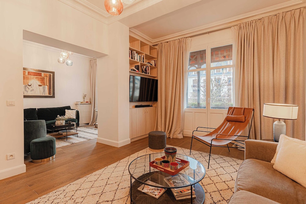 With a stay at this apartment in Deauville (Deauville City Centre), you'll be within a 10-minute walk of Deauville Beach and Casino Barriere de Deauville. This apartment is 9.9 mi (15.9 km) from Old Harbor of Honfleur and 0.3 mi (0.4 km) from Saint-Augustin Church. Make yourself comfortable in your air-conditioned apartment, featuring a refrigerator and a microwave. Digital television is provided for your entertainment. The bathroom has a bathtub and a hair dryer. Conveniences include a coffee/tea maker and a washer/dryer. Distances are displayed to the nearest 0.1 mile and kilometer.