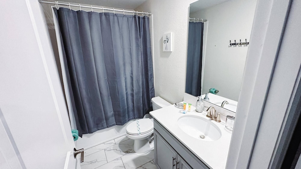 With a stay at New Home at Storey Lake 9bedrooms e 5bath - Tb41 in Kissimmee, you'll be within a 10-minute drive of Old Town and Orlando Vineland Premium Outlets. This family-friendly vacation home is 6.2 mi (9.9 km) from Disney Springs™ and 7.2 mi (11.6 km) from Walt Disney World® Resort. Make yourself at home in one of the 16 guestrooms. Distances are displayed to the nearest 0.1 mile and kilometer.