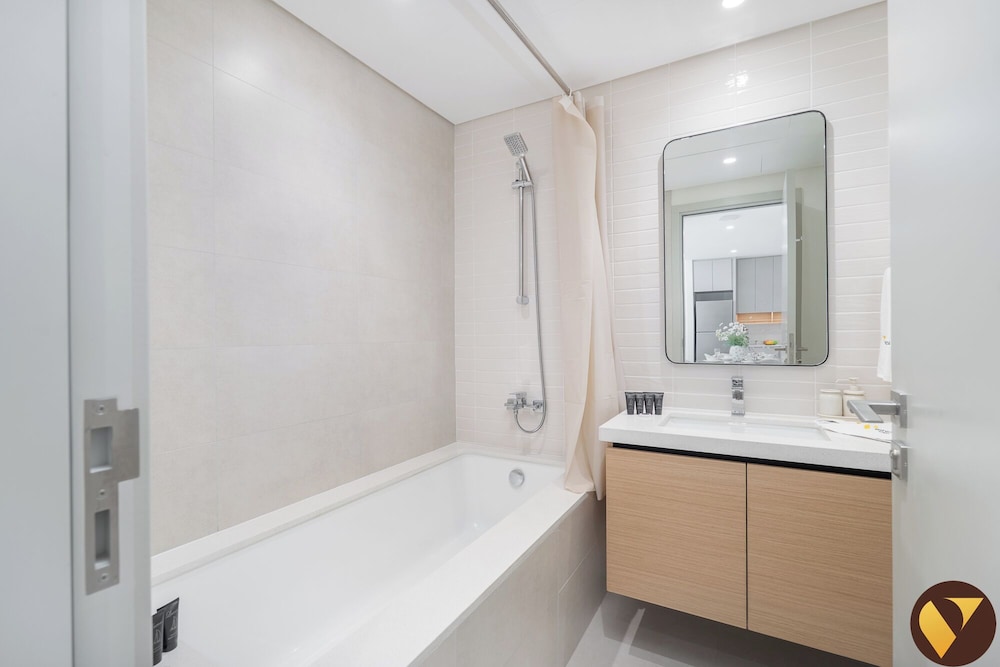 Located in Dubai (Dubai Creek Harbour), this apartment is within a 10-minute drive of Dubai Creek and Dubai Festival City Mall. This apartment is 7.8 mi (12.6 km) from Dubai Mall and 8 mi (12.9 km) from Burj Khalifa. Make yourself comfortable in this air-conditioned apartment, featuring a kitchen with an oven and a stovetop. There's a private balcony. A 55-inch Smart television with cable programming provides entertainment, while complimentary wireless internet access keeps you connected. Conveniences include a microwave and complimentary bottled water, and housekeeping is provided on request. Distances are displayed to the nearest 0.1 mile and kilometer.