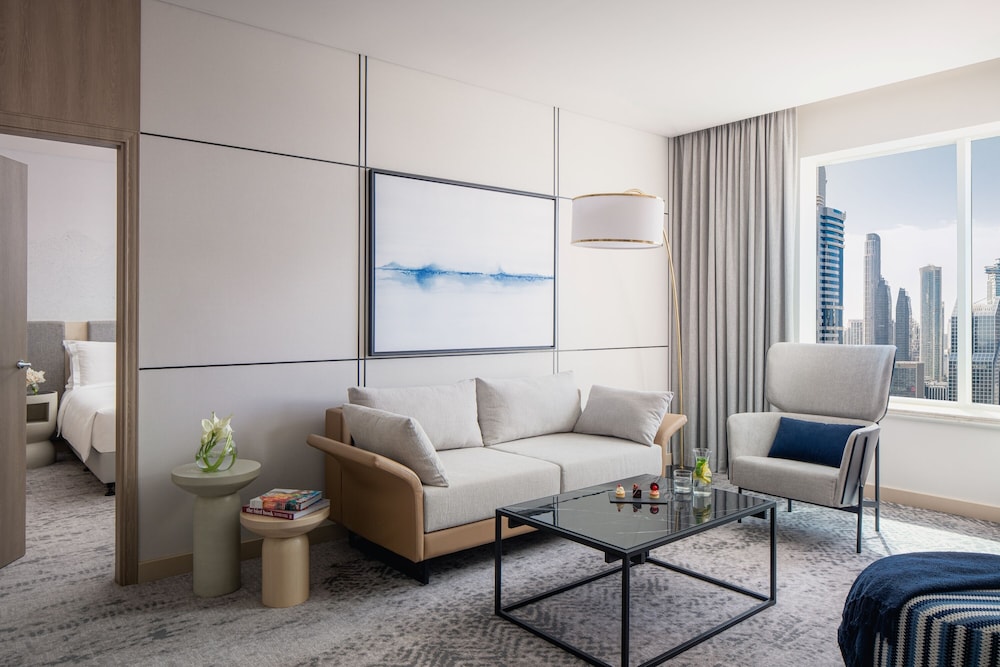 With a stay at Towers Rotana in Dubai (Trade Center), you'll be a 4-minute drive from Dubai Mall and 6 minutes from Burj Khalifa. This hotel is 3 mi (4.9 km) from Dubai Garden Glow and 3.4 mi (5.5 km) from Dubai Frame. Make yourself at home in one of the 377 guestrooms featuring refrigerators and minibars. 32-inch Smart televisions with satellite programming provide entertainment, while complimentary wireless internet access keeps you connected. Bathrooms feature bathtubs, designer toiletries, and bidets. Conveniences include phones, as well as laptop-compatible safes and desks. Distances are displayed to the nearest 0.1 mile and kilometer.