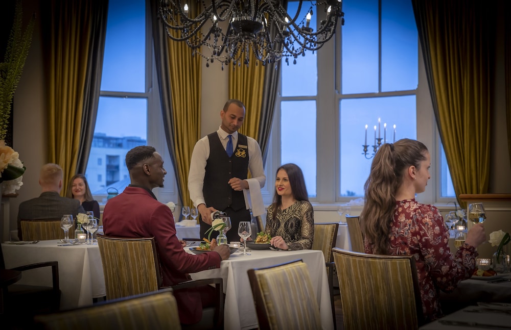 With a stay at The Royal Marine Hotel in Dublin (Dun Laoghaire), you'll be within a 15-minute drive of Aviva Stadium and Dublin Port. This upscale hotel is 6.8 mi (10.9 km) from Trinity College and 6.9 mi (11 km) from Bord Gáis Energy Theatre. Make yourself at home in one of the 228 guestrooms featuring refrigerators and LCD televisions. Complimentary wired and wireless internet access keeps you connected, and satellite programming provides entertainment. Private bathrooms with showers feature complimentary toiletries and hair dryers. Conveniences include laptop-compatible safes and desks, and housekeeping is provided daily. Distances are displayed to the nearest 0.1 mile and kilometer.