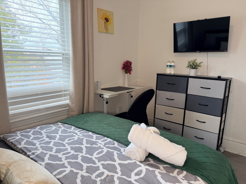 With a stay at Modern Private Share Bedroom Bus stop to NYC in Englewood, you'll be within a 10-minute drive of Yankee Stadium and American Dream. This apartment is 7.8 mi (12.6 km) from Central Park and 8 mi (12.9 km) from MetLife Stadium. Make yourself at home in one of the 2 air-conditioned rooms featuring microwaves. Prepare your meals in the shared/communal kitchen. Complimentary wireless internet access is available to keep you connected. Shared bathrooms are provided. Distances are displayed to the nearest 0.1 mile and kilometer.
