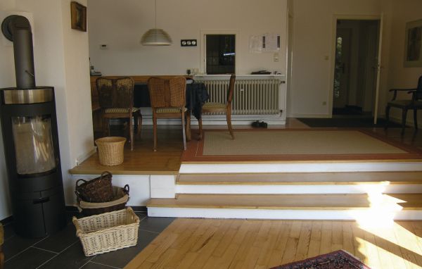 The rooms extend over the first floor and are traditionally and comfortably furnished. There is enough space for up to 4 people. The separate bedroom is equipped with a double bed. Two more sleeping places are located in the living area.