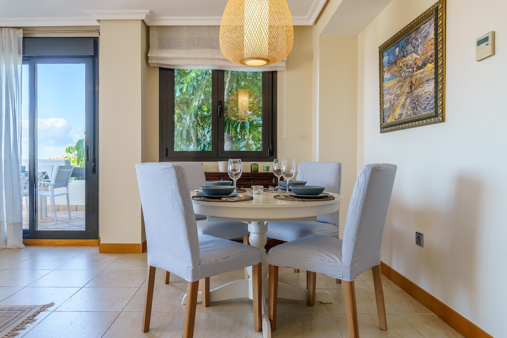 With a stay at this apartment in Estepona (New Golden Mile), you'll be within a 15-minute drive of Estepona Beach and El Saladillo Beach. This apartment is 9.8 mi (15.8 km) from Puerto Banús Marina and 10.1 mi (16.3 km) from Puerto Banús Beach. Make yourself comfortable in this air-conditioned apartment, featuring a kitchen with a refrigerator and an oven. A 21-inch flat-screen television with cable programming provides entertainment, while complimentary wireless internet access keeps you connected. Conveniences include a microwave and a coffee/tea maker. Distances are displayed to the nearest 0.1 mile and kilometer.