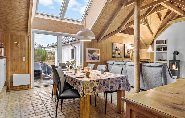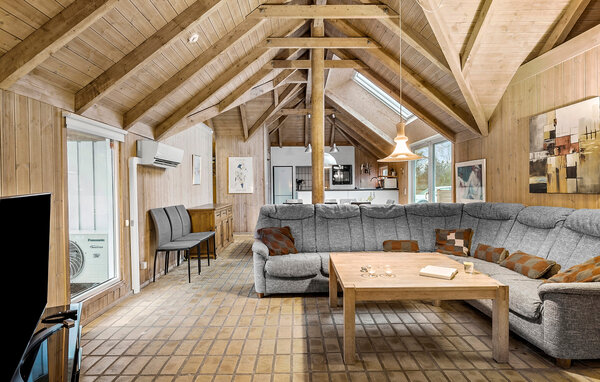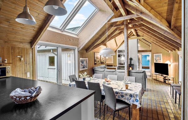 Your holiday in Slettestrand will be a relaxing experience surrounded by beautiful nature and modern comfort. This stylish wooden holiday home offers plenty of space for the whole family and impresses with its open-plan design with high wooden ceilings and a spacious outdoor area. Start the day in a relaxed way with a hot cup of coffee. You can cook together in the modern, well-equipped kitchen, while the open-plan dining area is ideal for cosy get-togethers.