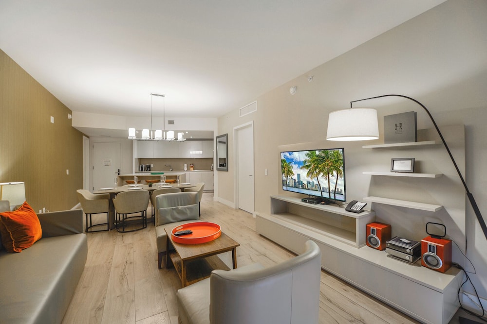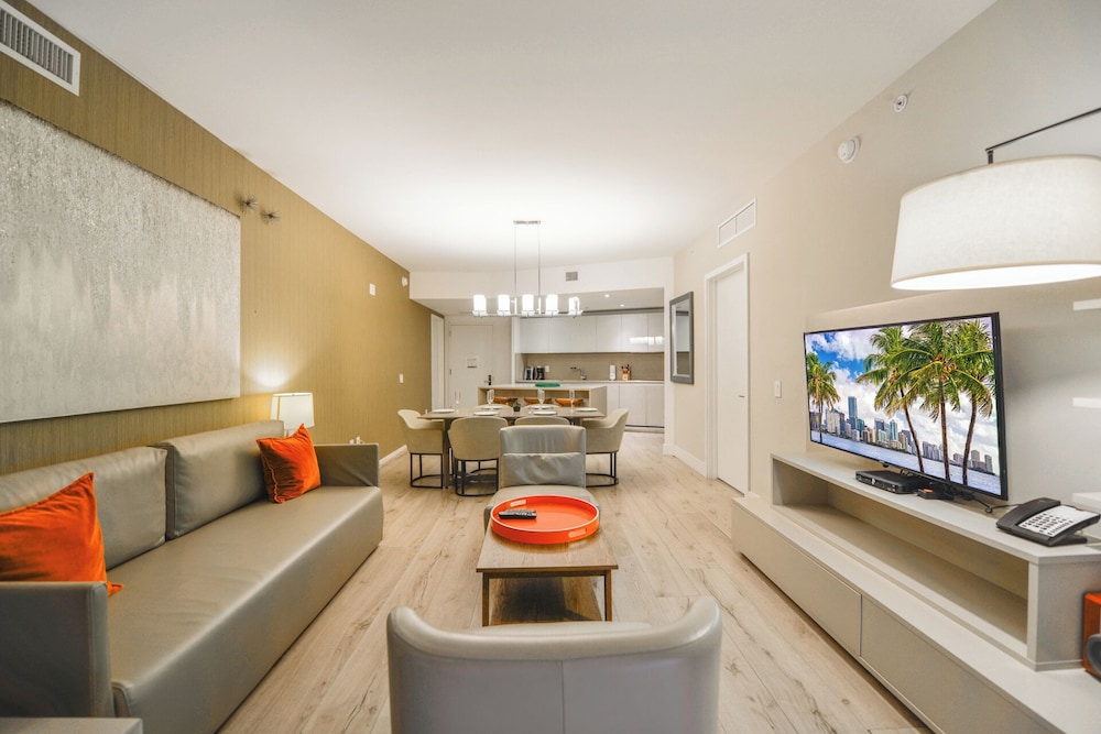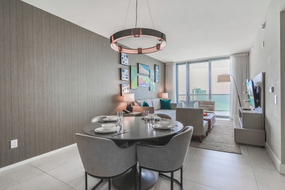 With a stay at this apartment in Hollywood (Hollywood Beach), you'll be a 4-minute drive from Hollywood Beach and 8 minutes from Aventura Mall. This beach apartment is 9.6 mi (15.4 km) from Hard Rock Stadium and 9.7 mi (15.6 km) from Port Everglades. Make yourself comfortable in this air-conditioned apartment, featuring a kitchen with a refrigerator and an oven. There's a private furnished balcony. A 50-inch Smart television with cable programming provides entertainment, while complimentary wireless internet access keeps you connected. Conveniences include a desk and a microwave, and you can also request a crib/infant bed (complimentary). Distances are displayed to the nearest 0.1 mile and kilometer.