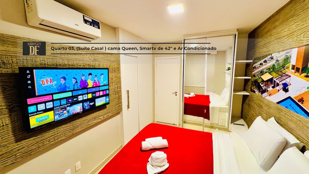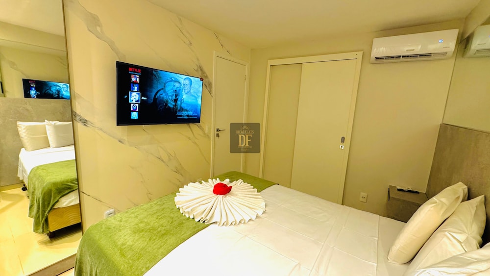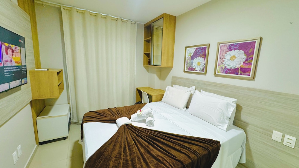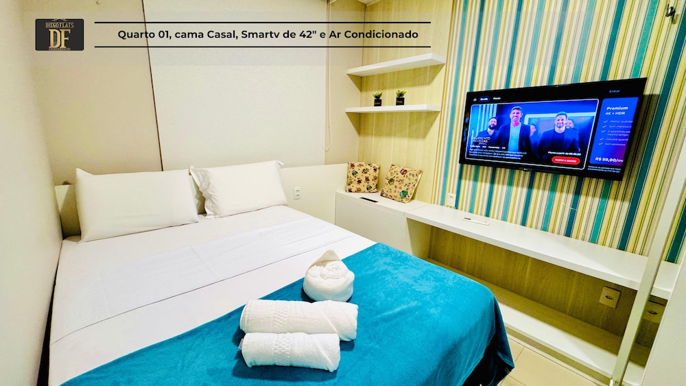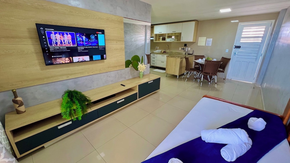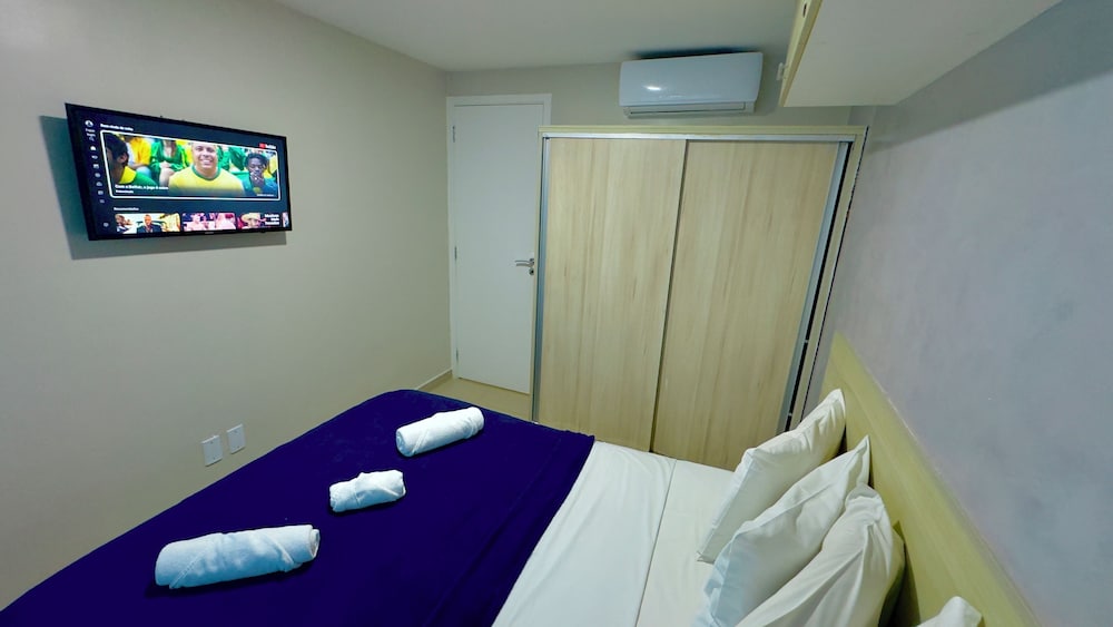 With a stay at Vg Fun by Diego Flats in Fortaleza (Praia do Futuro), you'll be a 1-minute drive from Praia do Futuro and 8 minutes from Beira Mar. This beach condo is 10.5 mi (16.9 km) from Beach Park Water Park and 4.1 mi (6.6 km) from Meireles Beach. Make yourself at home in one of the 30 individually decorated guestrooms, featuring kitchens with full-sized refrigerators/freezers and microwaves. 32-inch Smart televisions with digital programming provide entertainment, while complimentary wireless internet access keeps you connected. Conveniences include separate sitting areas and coffee/tea makers, and housekeeping is provided on request. Distances are displayed to the nearest 0.1 mile and kilometer.