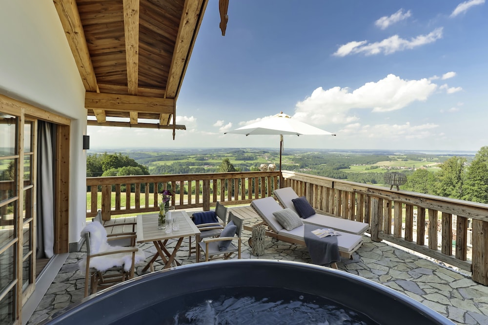 Located in Frasdorf, Chiemsee Chalet is in the mountains, within a 15-minute drive of Hochries Cable Car and Lake Chiemsee. This spa aparthotel is 11.4 mi (18.4 km) from Kampenwand Mountain and 13.2 mi (21.2 km) from Frauenwörth Abbey. Treat yourself to a stay in one of the 8 individually decorated guestrooms, featuring fireplaces and outdoor private hot tubs. Kitchens are outfitted with refrigerators, ovens, and stovetops. Smart televisions with premium TV channels are provided, while complimentary wireless internet access keeps you connected. Conveniences include safes and separate sitting areas, and housekeeping is provided daily. Distances are displayed to the nearest 0.1 mile and kilometer.