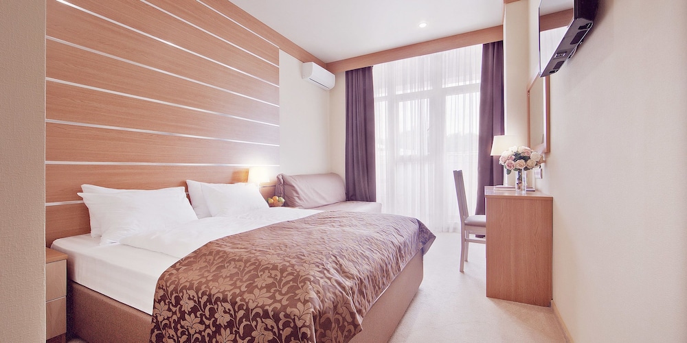 A stay at Alean Family Resort & SPA Biarritz places you in the heart of Gelendzhik, within a 5-minute drive of Aquapark Begemot and Park Olimp. This all-inclusive hotel is 1.4 mi (2.2 km) from Singing Fountain and 1.4 mi (2.3 km) from Torikos Gelendzhik Municipal Drama Theater. Make yourself at home in one of the 330 guestrooms featuring refrigerators. Rooms have private balconies. Complimentary wireless internet access keeps you connected, and digital programming is available for your entertainment. Private bathrooms with bathtubs or showers feature complimentary toiletries and hair dryers. Distances are displayed to the nearest 0.1 mile and kilometer.
