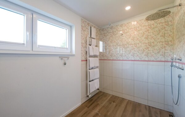 The glass rainforest shower in the stylish bathroom offers a truly relaxing experience.