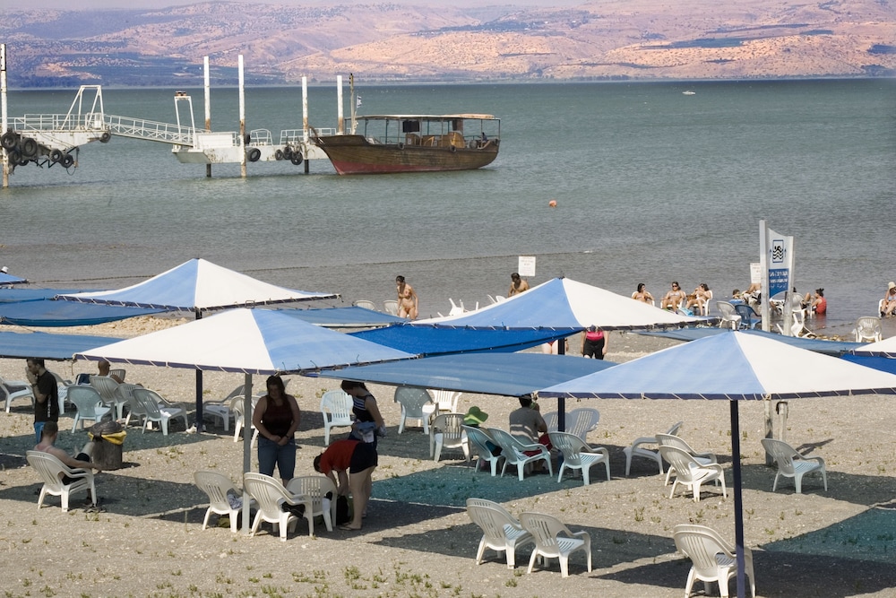 When you stay at Nof Ginosar Hotel in Emek HaYarden, you'll be on the beach, within a 10-minute walk of Sea of Galilee and Yigal Alon Museum. This beach hotel is 2.3 mi (3.7 km) from Magdala and 3.8 mi (6.1 km) from Tabgha. Make yourself at home in one of the 245 air-conditioned rooms featuring minibars and LCD televisions. Complimentary wireless internet access keeps you connected, and cable programming is available for your entertainment. Conveniences include safes and desks, and housekeeping is provided daily. Distances are displayed to the nearest 0.1 mile and kilometer.
