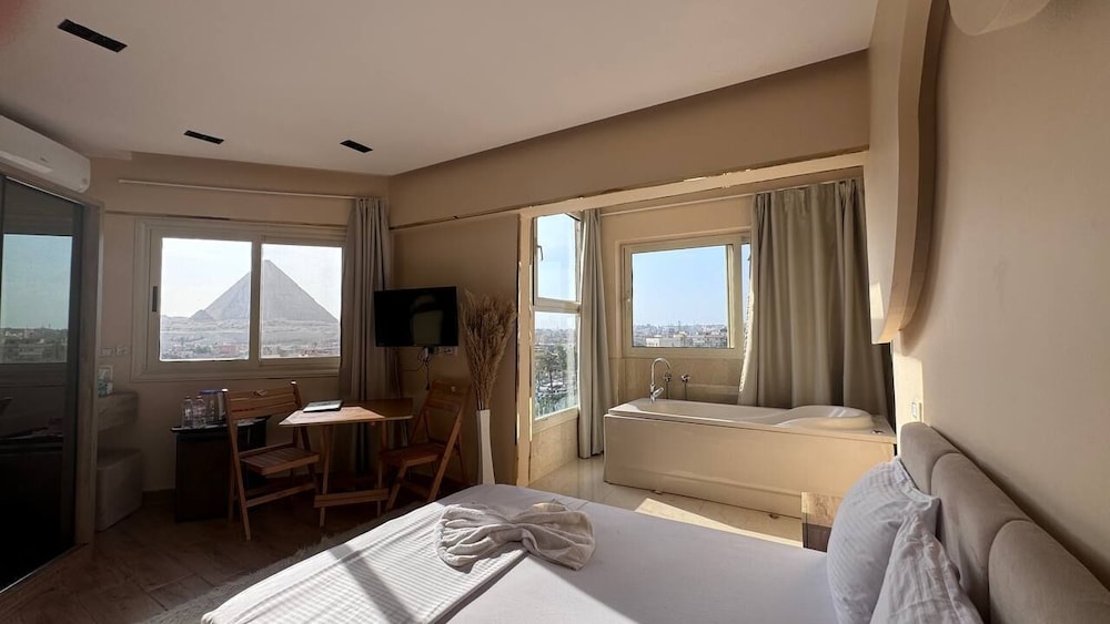 With a stay at moonlight pyramids view in Giza (Al Haram), you'll be within a 5-minute drive of Giza Pyramid Complex and Great Sphinx of Giza. This hotel is 1.6 mi (2.6 km) from Pyramid of Khufu and 3 mi (4.8 km) from Grand Egyptian Museum. Make yourself at home in one of the 10 guestrooms. Complimentary wireless internet access is available to keep you connected. Private bathrooms with bathtubs or showers feature hair dryers and bathrobes. Conveniences include safes and desks, and housekeeping is provided daily. Distances are displayed to the nearest 0.1 mile and kilometer.