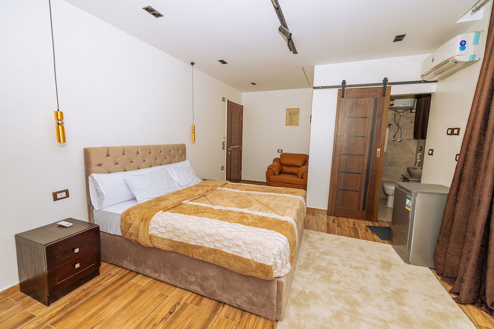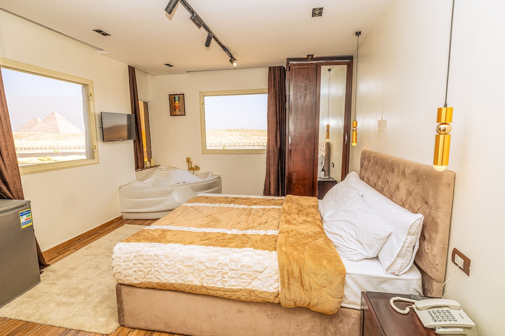 With a stay at White Pyramids inn in Giza (Pyramids Gardens), you'll be within a 10-minute drive of Grand Egyptian Museum and Pyramid of Khufu. This hotel is 5.1 mi (8.2 km) from Giza Pyramid Complex and 5.6 mi (9 km) from Great Sphinx of Giza. Make yourself at home in one of the 20 air-conditioned rooms featuring minibars and LCD televisions. Complimentary wireless internet access keeps you connected, and satellite programming is available for your entertainment. Conveniences include safes and electric kettles, and housekeeping is provided daily. Distances are displayed to the nearest 0.1 mile and kilometer.