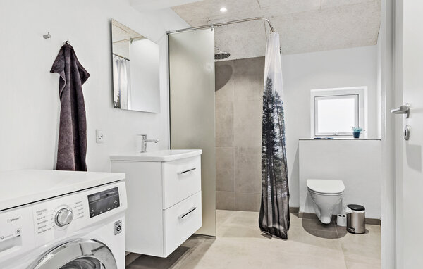 This inviting holiday home with room for 10 people awaits you just 100 metres from the beach - ideal if you want to spend a holiday with several families or friends close to the sea. The house has everything you need for a perfect holiday - a lovely open-plan kitchen, cosy living areas, two bathrooms with toilet and shower and four beautiful bedrooms. The beautiful, spacious eat-in kitchen is located on the first floor and offers plenty of space for the whole group. From here you also have access to a covered terrace with a beautiful view of the water, where you can enjoy your morning coffee or evening tea while the sun goes down.
