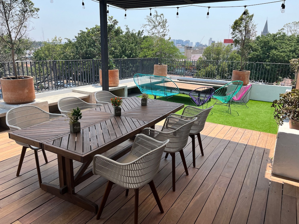 With a stay at Nube Mia Hostel, you'll be centrally located in Guadalajara, within a 5-minute drive of Guadalajara Cathedral and Avienda Chapultepec. This hostel is 4.2 mi (6.8 km) from Plaza del Sol and 6.2 mi (9.9 km) from Andares Shopping Center. Make yourself at home in one of the 38 guestrooms featuring refrigerators and microwaves. Prepare your meals in the shared/communal kitchen. Complimentary wireless internet access is available to keep you connected. Conveniences include desks and separate sitting areas, and housekeeping is provided daily. Distances are displayed to the nearest 0.1 mile and kilometer.