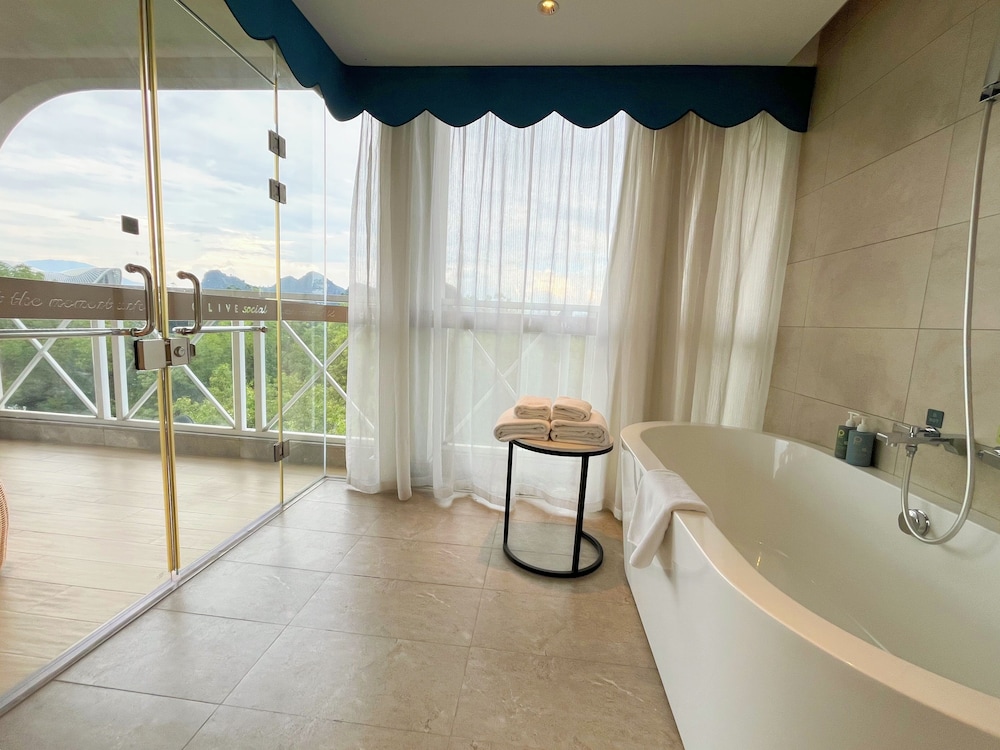 Featured amenities include a business center, dry cleaning/laundry services, and a 24-hour front desk. Event facilities at this hotel consist of a conference center and meeting rooms. For a surcharge, guests may use a roundtrip airport shuttle (available 24 hours) and a cruise ship terminal shuttle. Take time to pamper yourself with a visit to the full-service spa. Additional features at this Mediterranean hotel include complimentary wireless internet access, concierge services, and a communal living room. If you're planning a day at a nearby theme park, you can hop on the shuttle (surcharge). At Guilin O-LIVE Social Hotel , enjoy a satisfying meal at the restaurant. Quench your thirst with your favorite drink at the bar/lounge. Buffet breakfasts are available daily from 7:30 AM to 9:30 AM for a fee. Property class, provided by our rating system, is based on property type, amenities, and services.- Fee for buffet breakfast: approximately CNY 38 for adults and CNY 20 for children