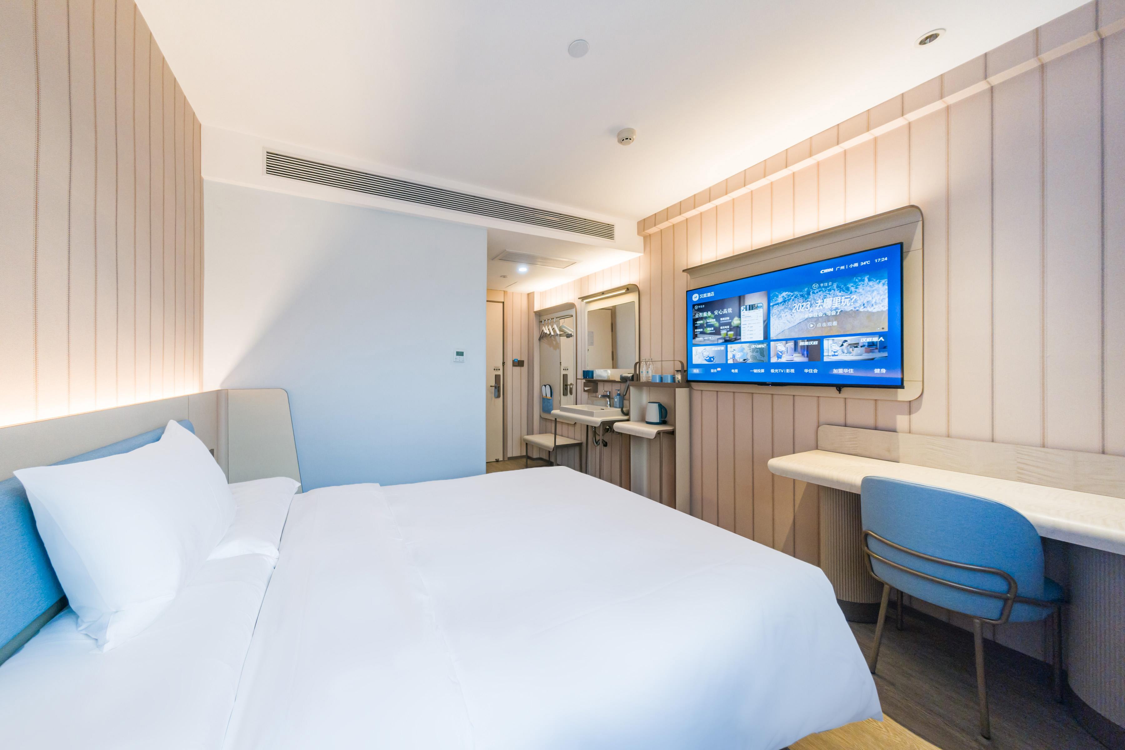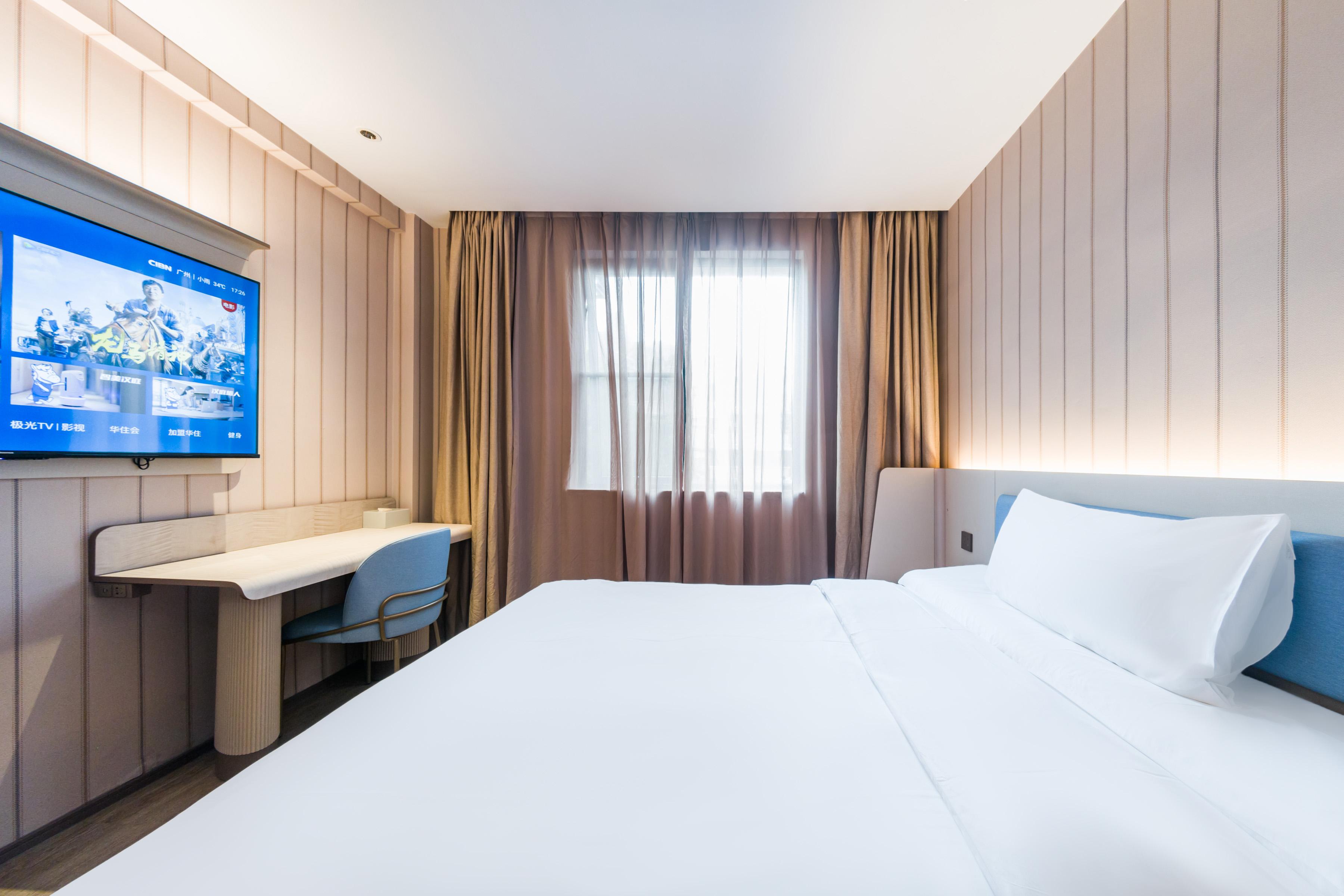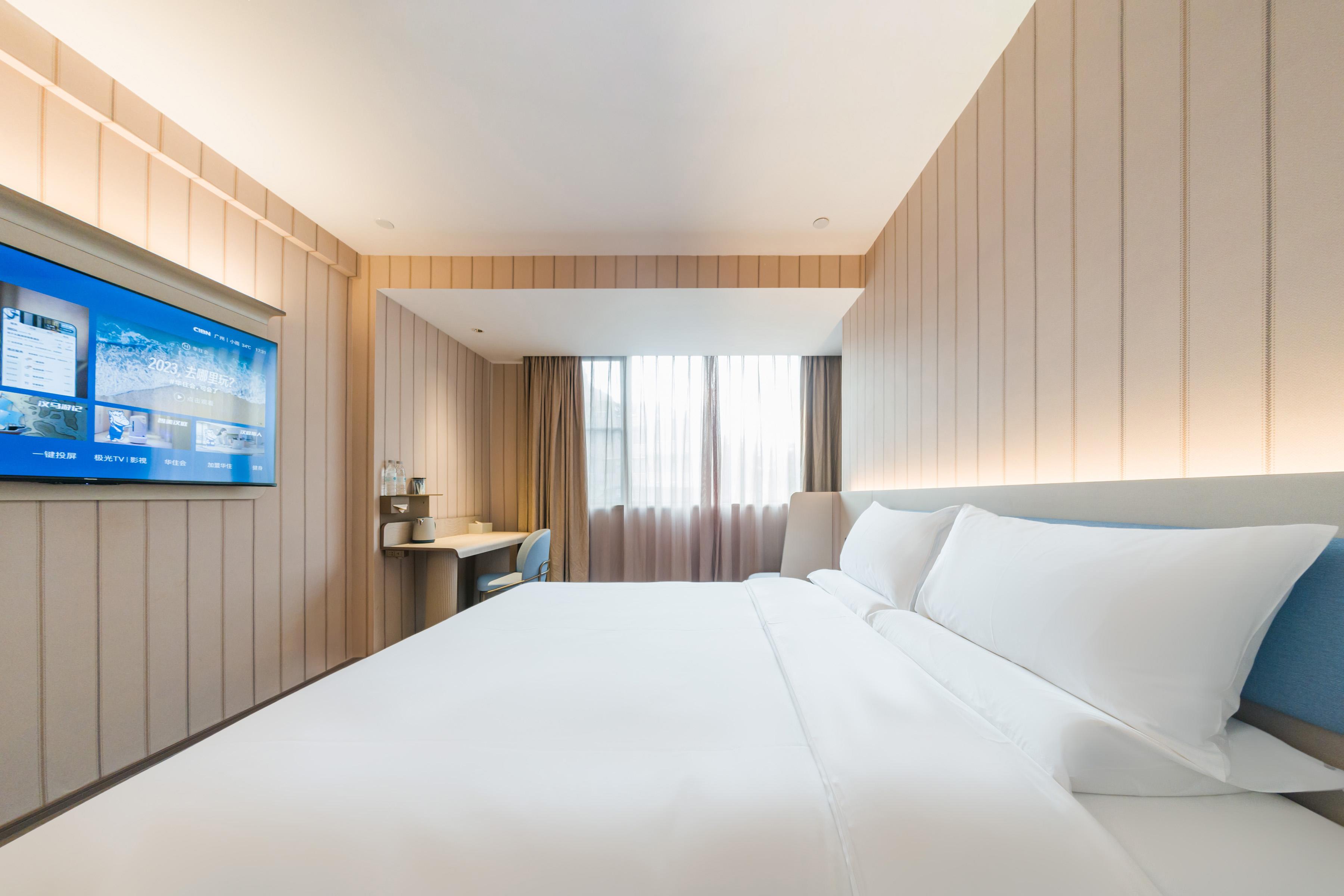 Hanting Guangzhou Zhuying Xingguangcheng Hotel is located on Xingang Middle Road in Haizhu District, within the Zhuxing Film and Television City Square in the Haizhu CBD area, within the compound of Zhujiang Film and Television Group. It enjoys a unique geographical location and is at the intersection of Zhujiang New Town and Pazhou Exhibition Hall. Zhuying Star Guangcheng Plaza & Liying Plaza features over a thousand retail stores, as well as various dining, rest and entertainment venues. The supporting facilities are rich and diverse, with everything available. It is close to Exit D of Kecun Metro Station and serves as a transfer point connecting Metro Line 3 of Tianhe District and Metro Line 8 of Haizhu District. It takes only one stop to reach Canton Tower, two stops to reach Zhujiang New Town and the South Campus of Sun Yat-sen University, and three stops to reach Pazhou Exhibition Hall. Through this station, it is convenient to travel to major transportation hubs. The hotel is the brand-new 3. 51 version of Hanting. It not only offers exquisite and comfortable guest rooms of various types for domestic and foreign guests, but also is equipped with a lobby business area, self-service laundry room, self-service luggage storage lockers, breakfast hall, parking lot and other facilities. The hotel is quiet in the midst of the city and has a central garden, making it an ideal choice for both business and leisure travel.