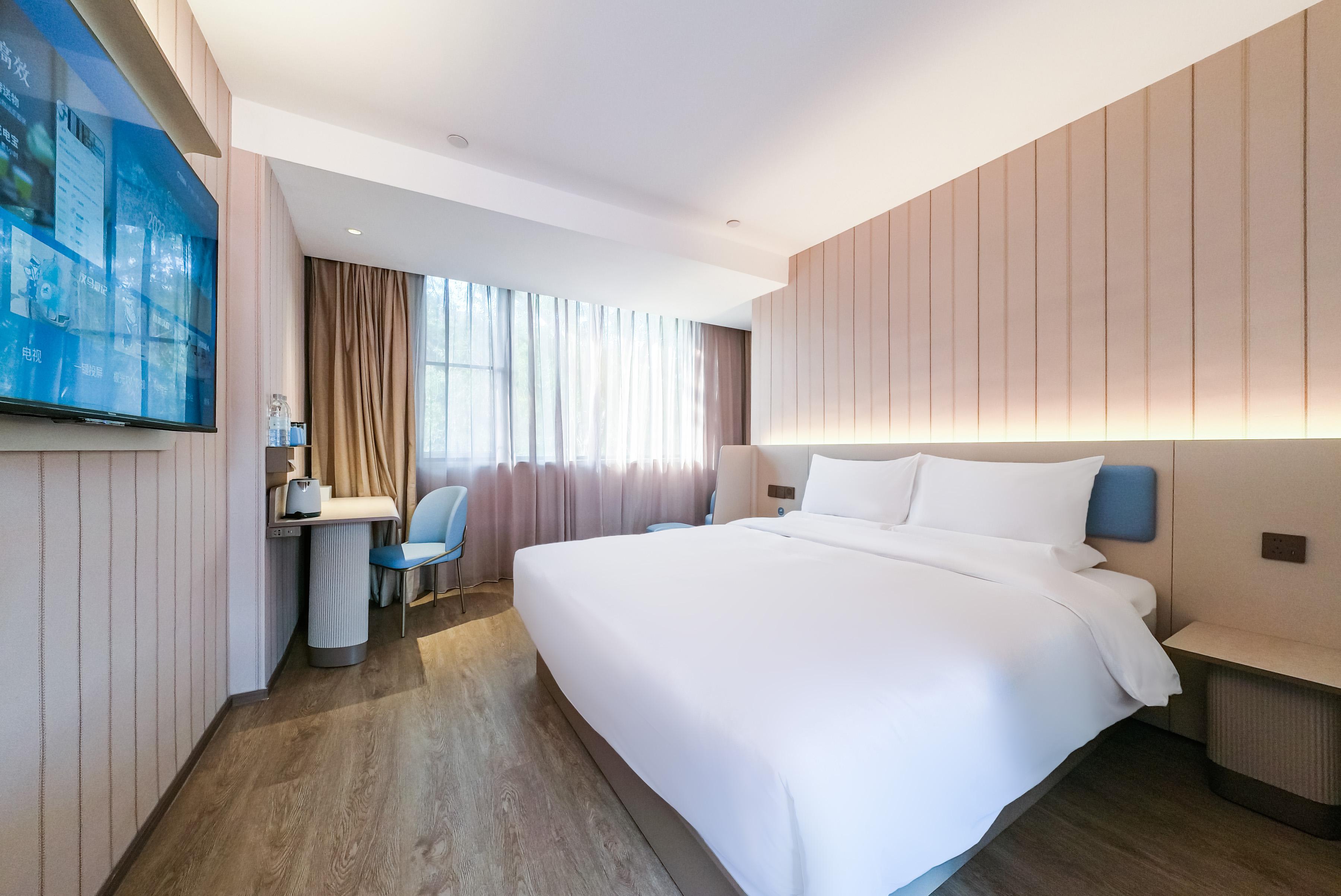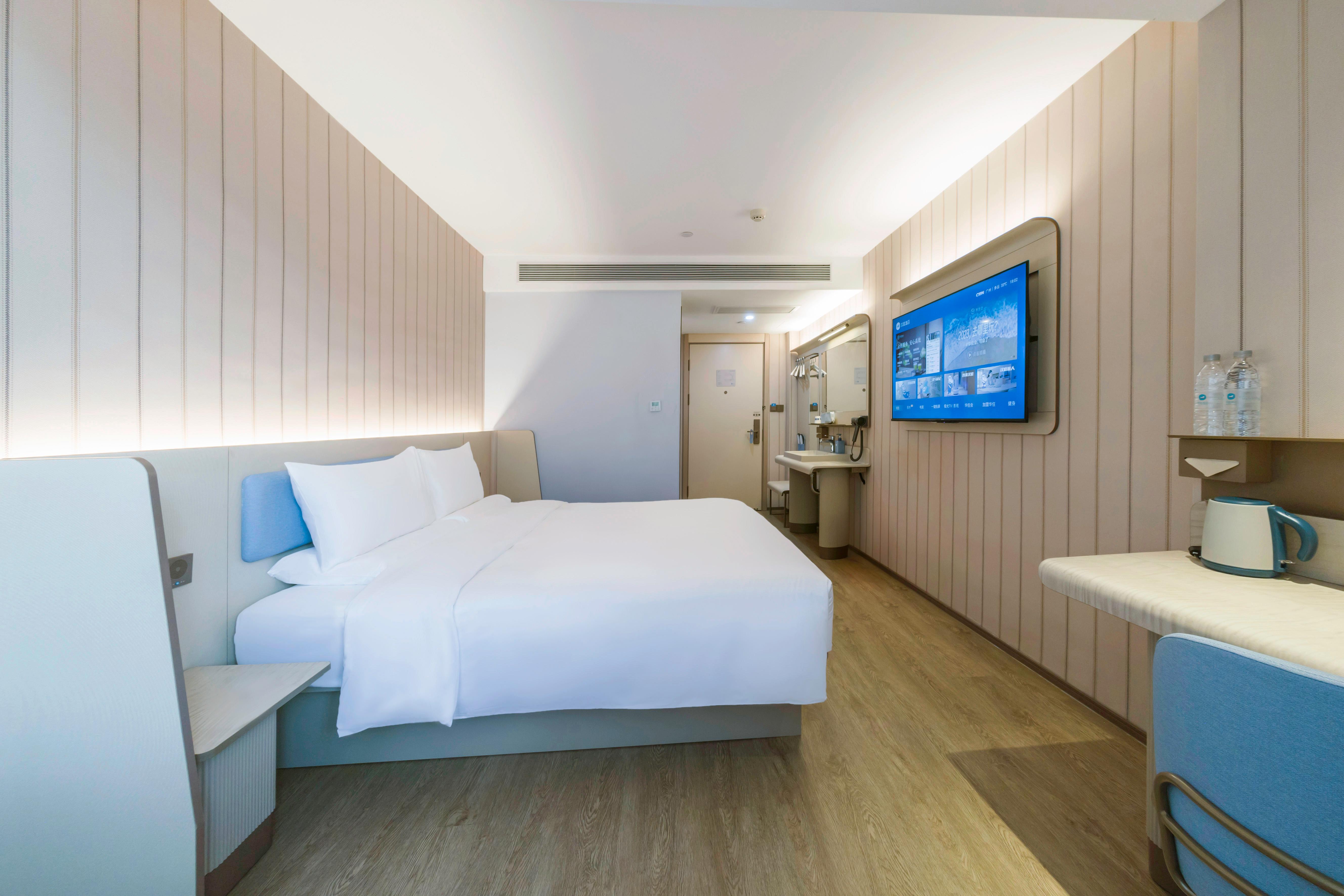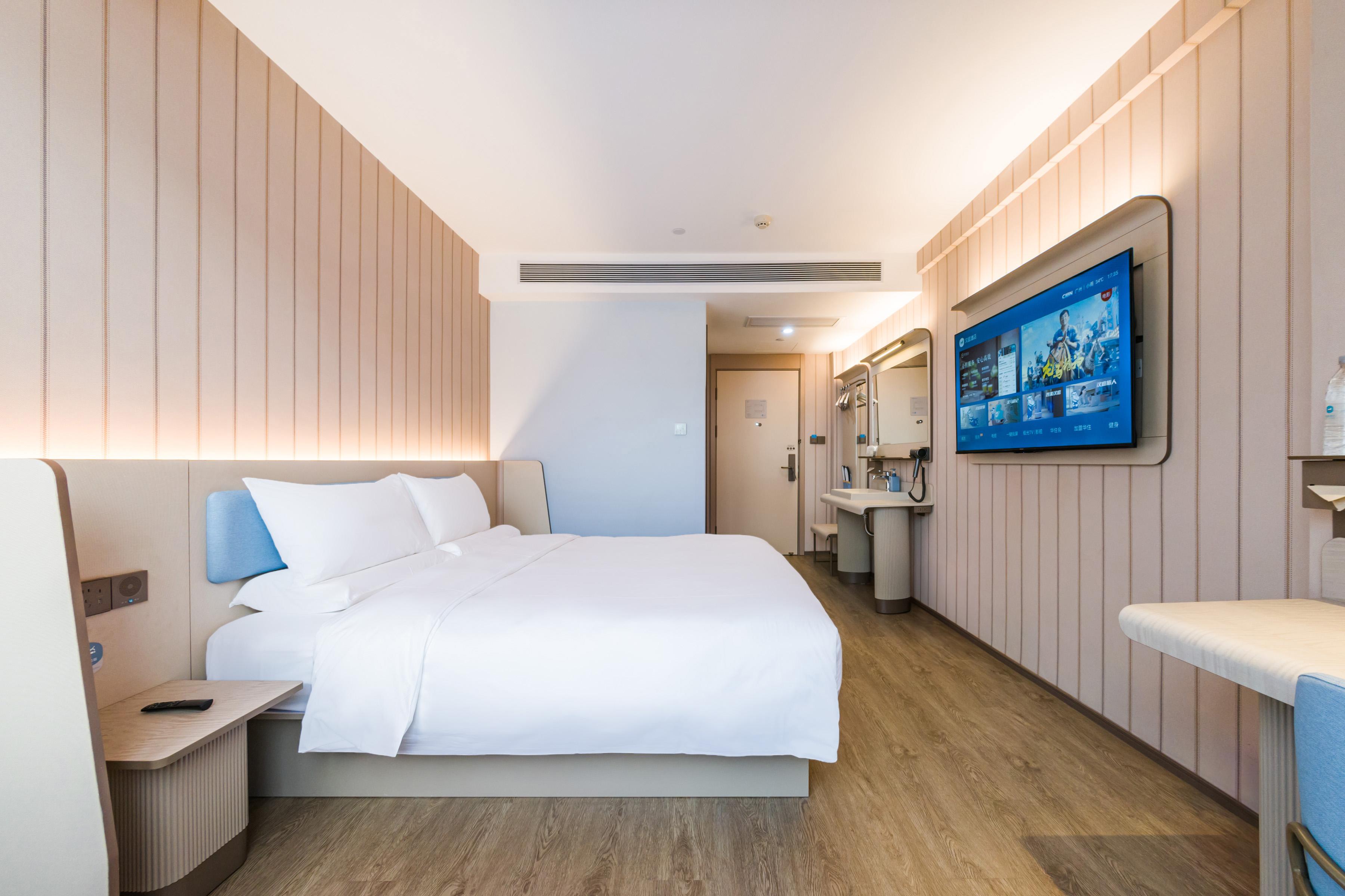 Hanting Guangzhou Zhuying Xingguangcheng Hotel is located on Xingang Middle Road in Haizhu District, within the Zhuxing Film and Television City Square in the Haizhu CBD area, within the compound of Zhujiang Film and Television Group. It enjoys a unique geographical location and is at the intersection of Zhujiang New Town and Pazhou Exhibition Hall. Zhuying Star Guangcheng Plaza & Liying Plaza features over a thousand retail stores, as well as various dining, rest and entertainment venues. The supporting facilities are rich and diverse, with everything available. It is close to Exit D of Kecun Metro Station and serves as a transfer point connecting Metro Line 3 of Tianhe District and Metro Line 8 of Haizhu District. It takes only one stop to reach Canton Tower, two stops to reach Zhujiang New Town and the South Campus of Sun Yat-sen University, and three stops to reach Pazhou Exhibition Hall. Through this station, it is convenient to travel to major transportation hubs. The hotel is the brand-new 3. 51 version of Hanting. It not only offers exquisite and comfortable guest rooms of various types for domestic and foreign guests, but also is equipped with a lobby business area, self-service laundry room, self-service luggage storage lockers, breakfast hall, parking lot and other facilities. The hotel is quiet in the midst of the city and has a central garden, making it an ideal choice for both business and leisure travel.