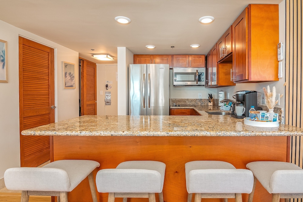 With a stay at this apartment in Honolulu (Waikiki), you'll be within a 5-minute drive of Ala Moana Center and Waikiki Beach Walk. This apartment is 0.9 mi (1.5 km) from Royal Hawaiian Center and 1 mi (1.7 km) from International Market Place. Make yourself comfortable in this apartment, featuring a kitchen with a refrigerator and an oven. Conveniences include a microwave and a coffee/tea maker. Distances are displayed to the nearest 0.1 mile and kilometer.