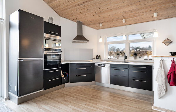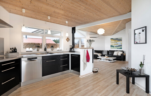 Welcome to your vacation home, where you can fully relax in the elegant ambience. In the stylish, open kitchen, the whole family can cook together and discuss the day's vacation plans. Spend cozy hours in the living room. Enjoy a refreshing drink and play card or board games or immerse yourself in a good book. The wood-burning stove adds to the cozy atmosphere. Outside, the spacious terrace is waiting for you to indulge yourself to the full. You can also enjoy a barbecue together in the open air. The adjacent soccer pitch is the ideal place for a small soccer tournament. Score the vacation goal of the month here.