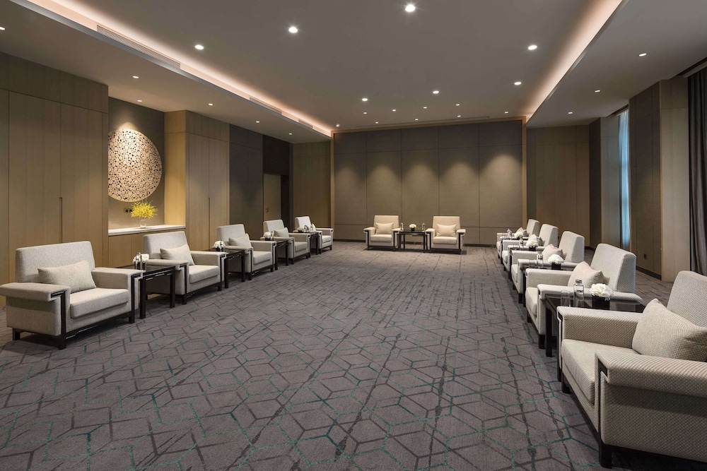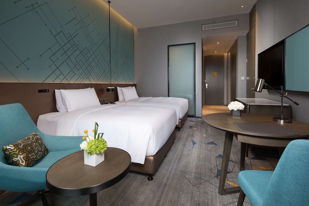 Located in Qingdao (Huangdao District), DoubleTree by Hilton Qingdao Oriental Movie Metropolis is within a 10-minute drive of Shandong Zhushan National Forest Park and China Petroleum University. This hotel is 6.3 mi (10.1 km) from Orient Golf Club and 7.6 mi (12.2 km) from Jiashike Huangdao Shopping Center. Make yourself at home in one of the 393 air-conditioned rooms featuring minibars and LCD televisions. Complimentary wireless internet access keeps you connected, and cable programming is available for your entertainment. Bathrooms have rainfall showerheads and hair dryers. Conveniences include laptop-compatible safes and desks, as well as phones with free local calls. Distances are displayed to the nearest 0.1 mile and kilometer.