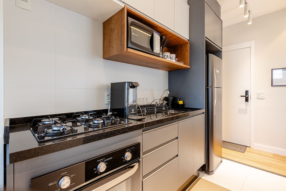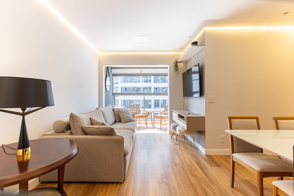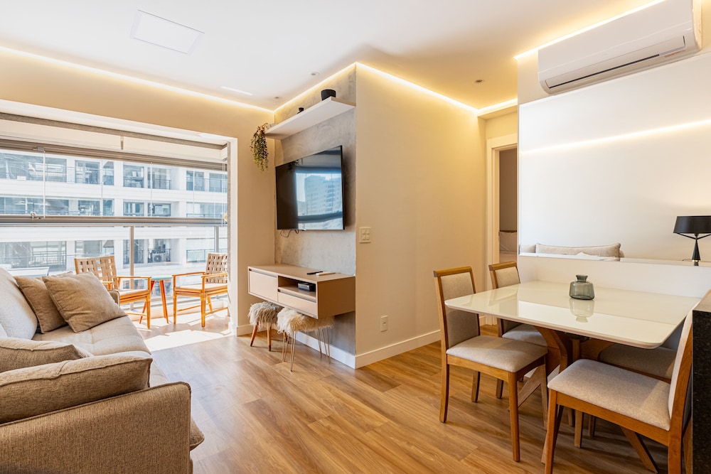With a stay at this apartment in São Paulo (Moema), you'll be a 3-minute drive from Ibirapuera Park and 8 minutes from Paulista Avenue. This apartment is 6.6 mi (10.5 km) from Allianz Parque and 8.9 mi (14.3 km) from Interlagos Race Track. Make yourself comfortable in this individually decorated apartment, featuring a kitchen with a full-sized refrigerator/freezer and an oven. Complimentary wireless internet access keeps you connected, and a 32-inch Smart television is provided for your entertainment. Conveniences include a desk and a separate sitting area. Distances are displayed to the nearest 0.1 mile and kilometer.
