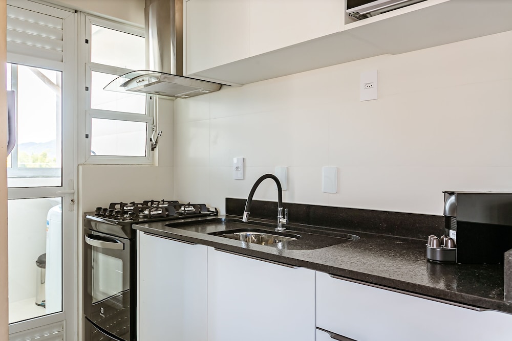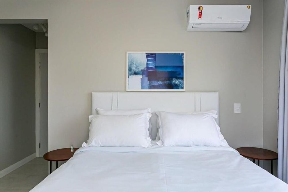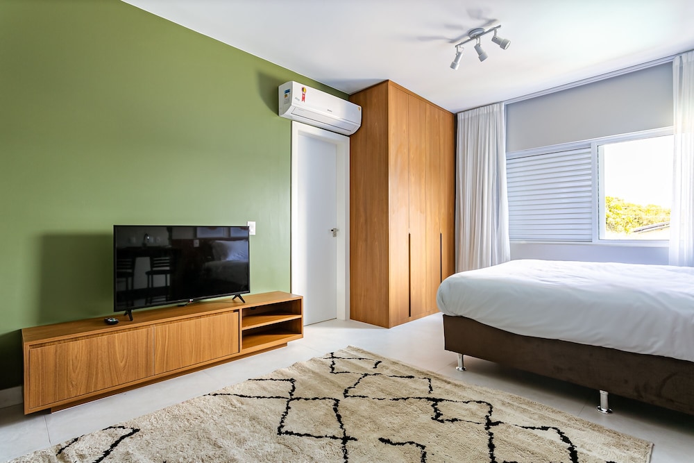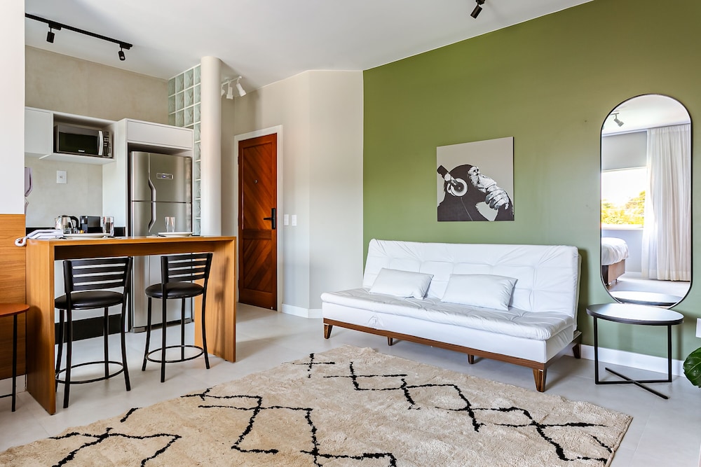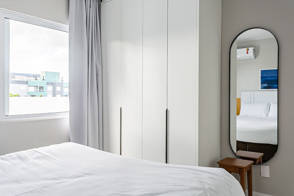 With a stay at Agua Marinha by Viva - Prédio com apartamentos completos, com piscina e a passos da praia in Florianópolis (Ingleses do Rio Vermelho), you'll be steps from Ingleses Beach and 10 minutes by foot from Barra Norte Shopping Centre. This guesthouse is 7 mi (11.3 km) from Canasvieiras Beach and 7.4 mi (11.9 km) from Brava Beach. Make yourself at home in one of the 9 air-conditioned rooms featuring kitchens with full-sized refrigerators/freezers and microwaves. Rooms have private lanais. 32-inch LCD televisions with digital programming provide entertainment, while complimentary wireless internet access keeps you connected. Conveniences include coffee/tea makers and washing machines. Distances are displayed to the nearest 0.1 mile and kilometer.