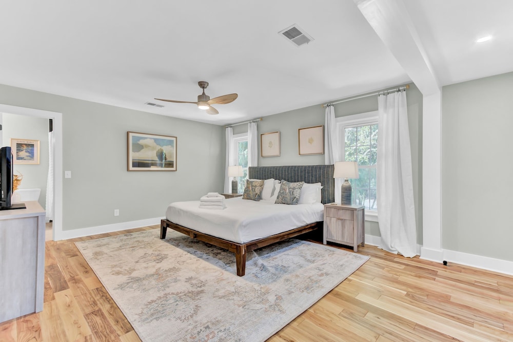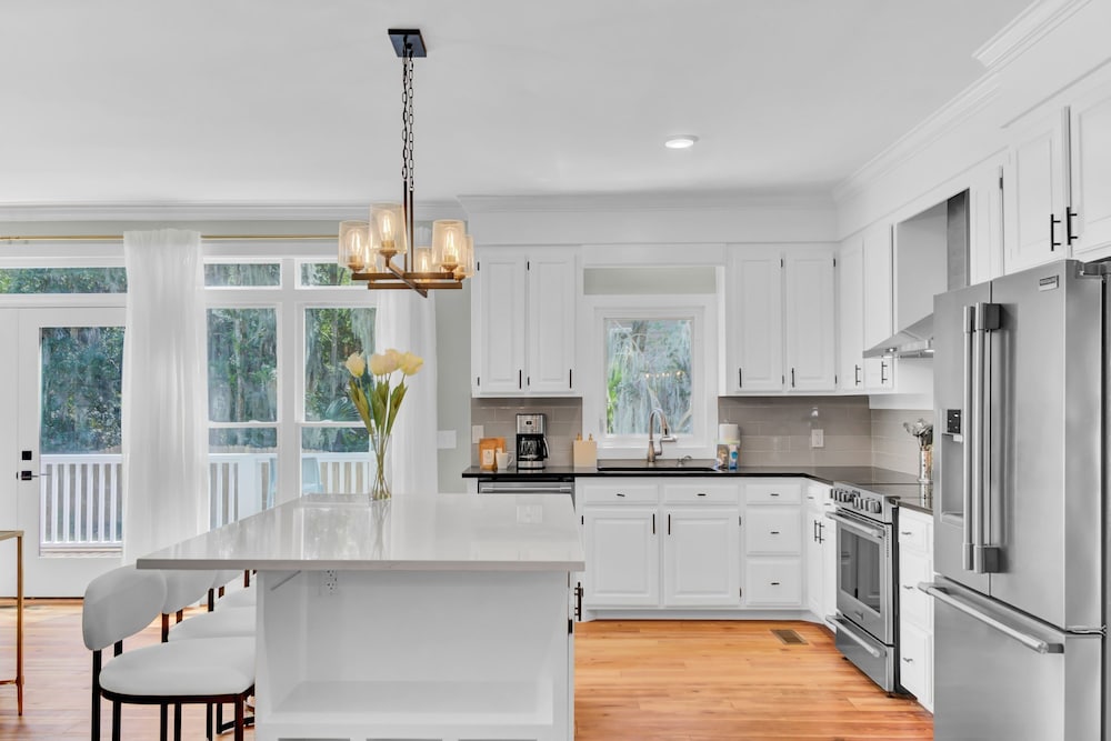 With a stay at Southern Oasis by Avantstay 0 5mi Walk to the Beach Pool Patio Large Yard in Isle of Palms, you'll be a 2-minute drive from Front Beach and 9 minutes from Wild Dunes Resort Golf Course. This vacation home is 11.7 mi (18.8 km) from Patriots Point and 14.6 mi (23.5 km) from South Carolina Aquarium. Make yourself at home in one of the 8 guestrooms. Distances are displayed to the nearest 0.1 mile and kilometer.