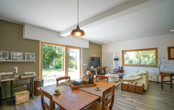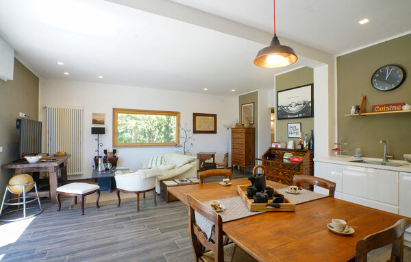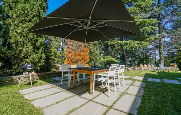 Take a stroll through your park-like garden in the morning and enjoy the first rays of sunshine of the day. Then use your practically equipped kitchen to prepare a sumptuous breakfast. You can eat at the adjoining dining table or outside in the garden. Here, numerous trees provide shade and create a pleasant and peaceful atmosphere. The view from here is fabulous. Enjoy the view of the surrounding mountainous landscape. In the vacation home, the sofa corner offers the opportunity to linger and relax. Watch a funny movie or get together for a sociable game of cards.