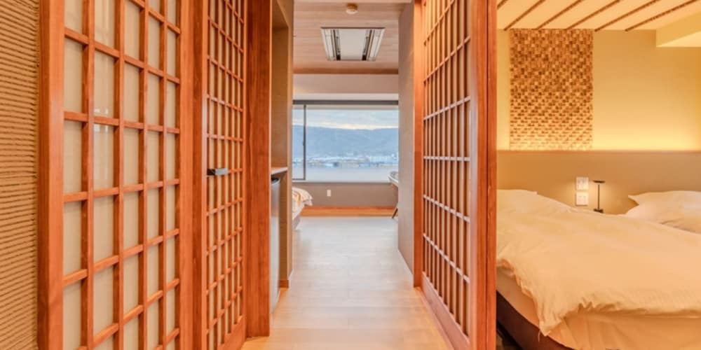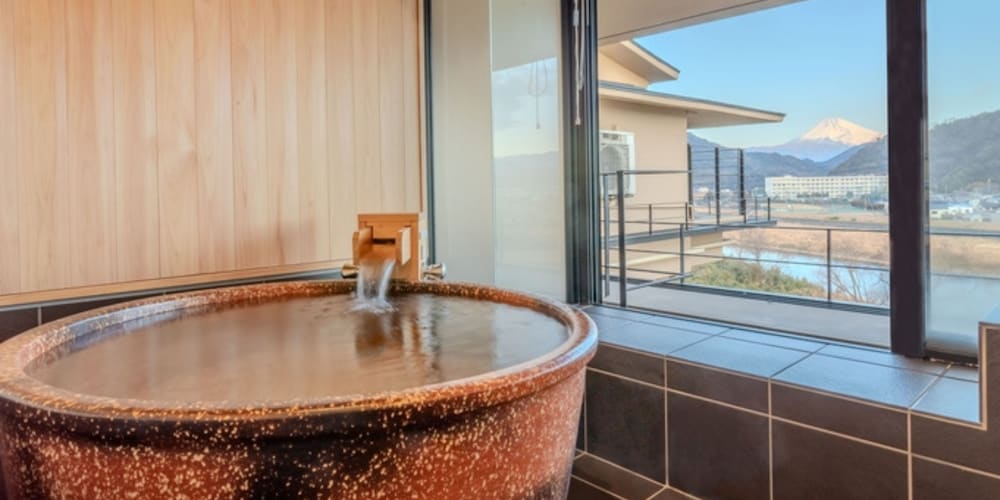 With a stay at Fugaku Hanabusa in Izunokuni (Izu Nagaoka Onsen), you'll be a 4-minute drive from Nirayama Reverberatory Furnace and 7 minutes from Fuji-Hakone-Izu National Park. This ryokan is 2.6 mi (4.2 km) from Ao Terrace and 3.5 mi (5.7 km) from Izu-Mito Sea Paradise. Make yourself at home in one of the 26 air-conditioned rooms featuring LCD televisions. Complimentary wireless internet access keeps you connected, and digital programming is available for your entertainment. Bathrooms feature shower/tub combinations, hair dryers, and slippers. Conveniences include safes, and housekeeping is provided daily. Distances are displayed to the nearest 0.1 mile and kilometer.