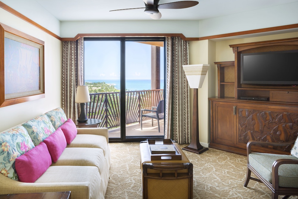 With a stay at Aulani, Disney Vacation Club Villas in Kapolei, you'll be on the waterfront, just a 1-minute walk from Ko Olina Golf Club and 6 minutes by foot from Lanikuhonua Lagoon. This 4.5-star resort is 10.4 mi (16.7 km) from Pearl Harbor and 17.4 mi (27.9 km) from USS Arizona Memorial. Make yourself at home in one of the 840 individually decorated guestrooms, featuring microwaves and iPod docking stations. Rooms have private balconies or patios. Flat-screen televisions with satellite programming are available for your entertainment, and DVD players are also provided. Private bathrooms with shower/tub combinations feature deep soaking bathtubs and rainfall showerheads. Distances are displayed to the nearest 0.1 mile and kilometer.