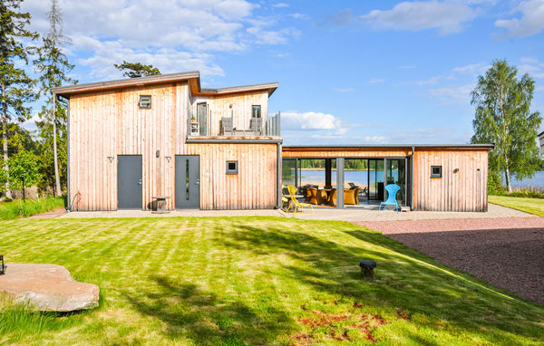 Inside the house you can expect many cozy areas for socializing and relaxing. The large glass areas let in a lot of light and you can enjoy the view over Lake Vänern. The house is very modern and the kitchen, which is fully equipped, invites you to have cozy dinners. There are 2 bathrooms with shower and the house has 5 bedrooms with comfortable beds. In the middle of the house there is a winter garden, which can be easily opened/closed with large glass surfaces. There is also a fully equipped outdoor kitchen.