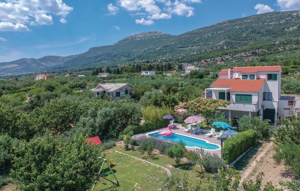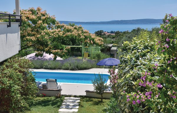 The beautiful vacation apartment with terrace and outdoor pool is spread over two floors. It has four bedrooms and is therefore suitable for a family vacation or vacation with friends who want to relax away from the hustle and bustle of the city. From the terrace there is a breathtaking view of the bay and the rolling countryside. Nearby there are railroad tracks on which daily trains run. From the nearby road you can easily get to the worth seeing cities like Split and Trogir, where you can visit the ancient monuments as well as various entertainment facilities.