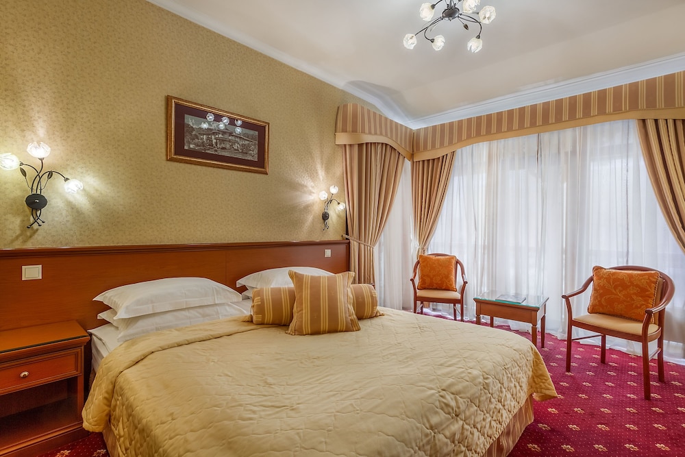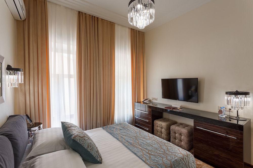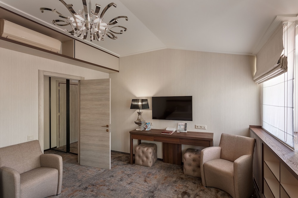 Featured amenities include a 24-hour front desk, luggage storage, and laundry facilities. For a surcharge, guests may use a roundtrip airport shuttle (available 24 hours) and a train station pick-up service. Be sure to enjoy recreational amenities including an indoor pool and a sauna. Additional amenities at this hotel include complimentary wireless internet access, a television in a common area, and tour/ticket assistance. Satisfy your appetite for lunch or dinner at the hotel's restaurant, Тифлисский дворик, or stay in and take advantage of the 24-hour room service. Relax with a refreshing drink at one of the 2 bars/lounges. Buffet breakfasts are available daily from 7:00 AM to 11:00 AM for a fee.- Fee for buffet breakfast: approximately RUB 1500 for adults and RUB 1500 for children