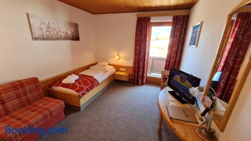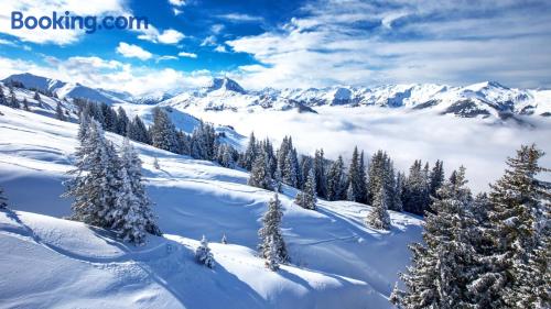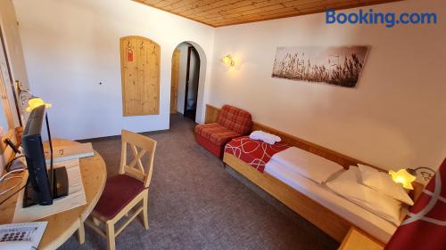 Idyllically located amidst the Kitzbuhel Alps, adjacent from the charming village of Kirchberg the Hotel Klausen is a picturesque, quintessential Austrian Chalet. Compromising of carved wood exteriors, oval peeping windows and low-slanting roofing, complete of course with a thick layer of fresh, white snow! During the summer months... You can go sunbathing on our terrace, take a dip in our pool or relax in our sauna and steam bath free of charge. We also have a solarium and can arrange massages for you (charges apply for these services). All our rooms have very rustic furniture as well as a shower and toilet. During winter time... Right in front of our hotel you will find a ski school, apres ski, ski rental and a slope which is very suitable for kids. Furthermore, you are only a 3 minute walk from the famous Fleckalmbahn (500 metres away), which takes you to one of the most beautiful skiing regions in Tyrol.