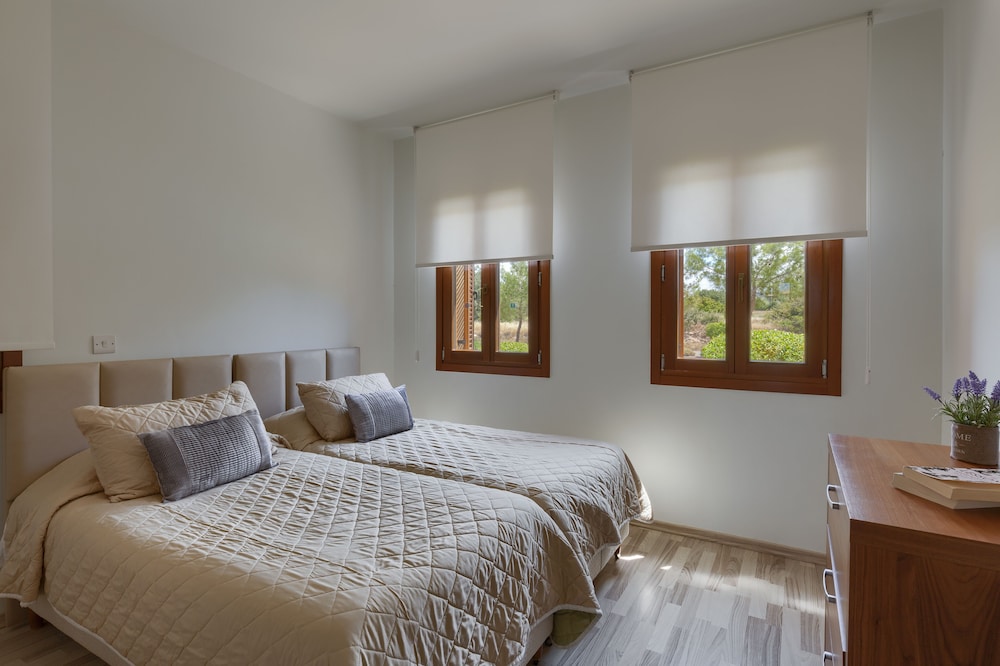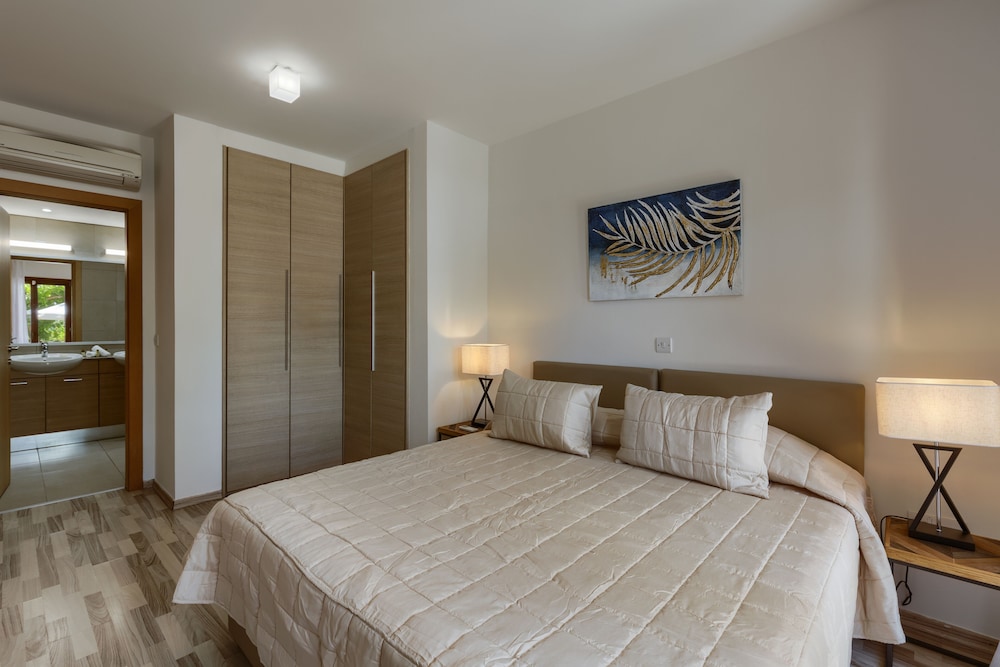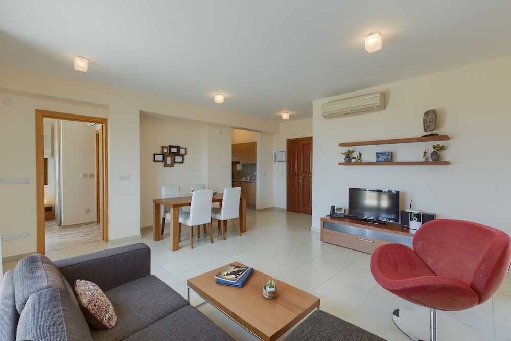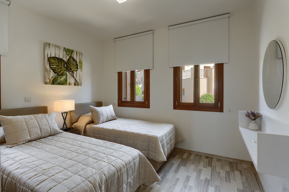 When you stay at Aphrodite Hills Rentals – Apartments in Kouklia, you'll be in the historical district, just steps from Aphrodite Hills Riding Club and Aphrodite Hills Golf. This beach aparthotel is 16.5 mi (26.5 km) from Paphos Harbour and 2.1 mi (3.3 km) from Aphrodite's Rock. Make yourself at home in one of the 140 individually decorated guestrooms, featuring kitchens with refrigerators and ovens. Rooms have private furnished balconies. Flat-screen televisions and DVD players are provided for your entertainment, while complimentary wireless internet access keeps you connected. Conveniences include phones, as well as safes and desks. Distances are displayed to the nearest 0.1 mile and kilometer.