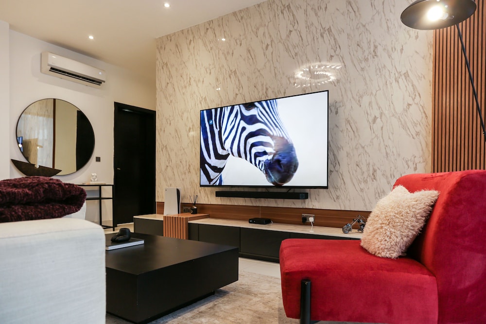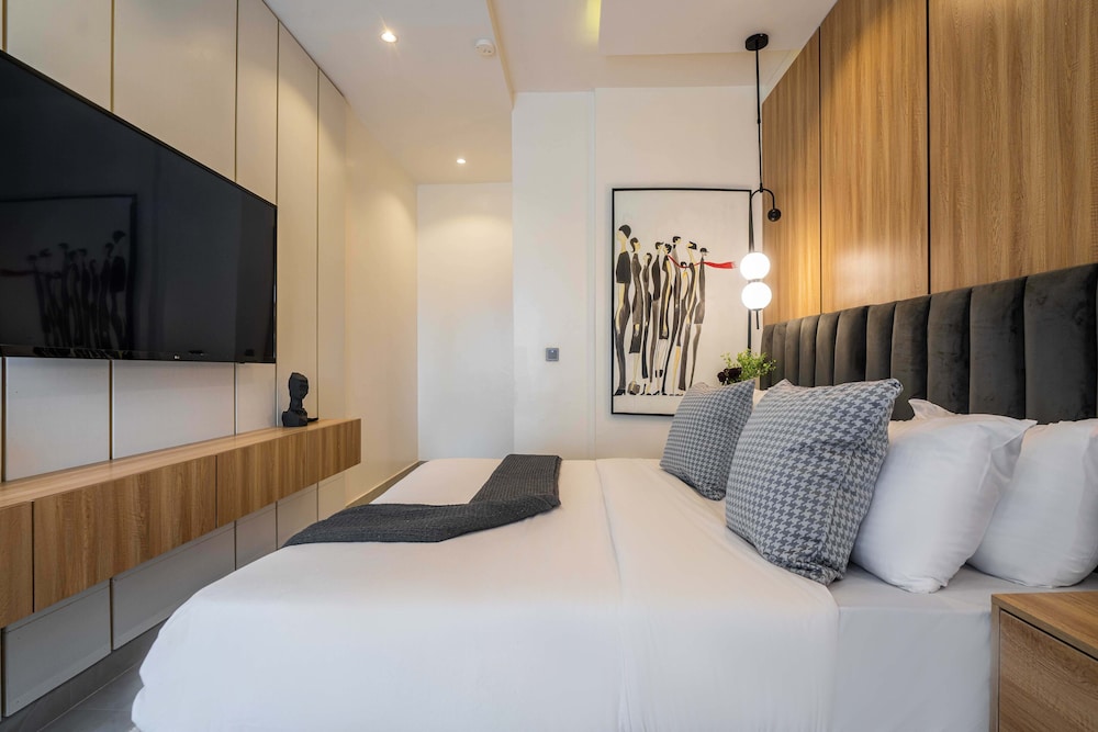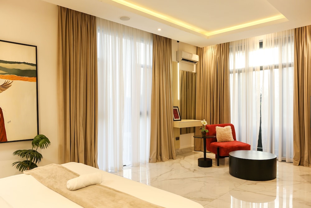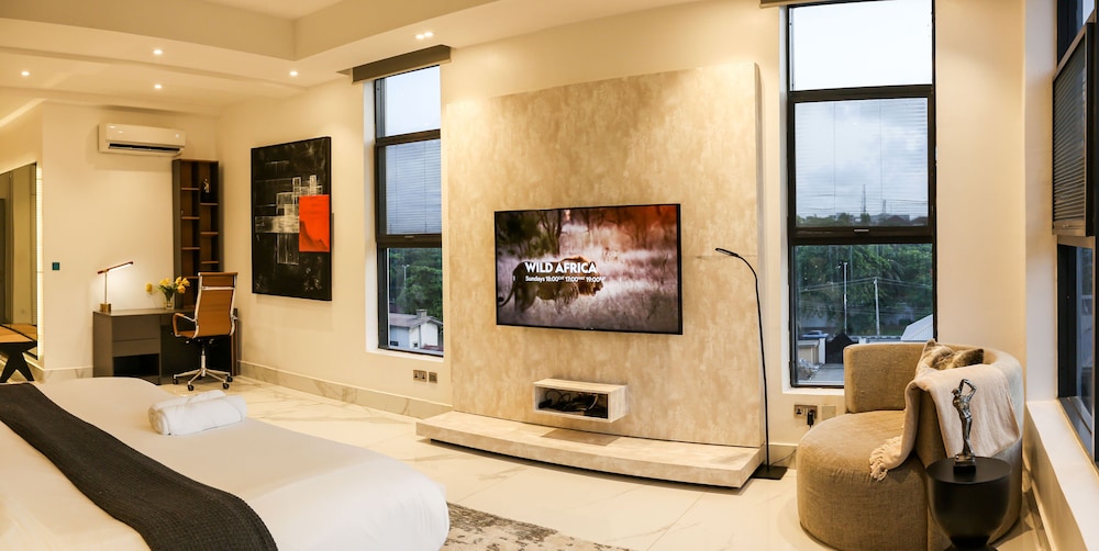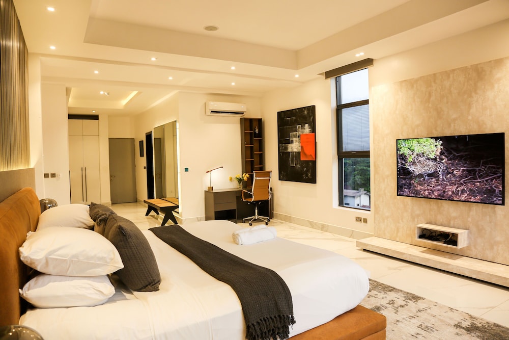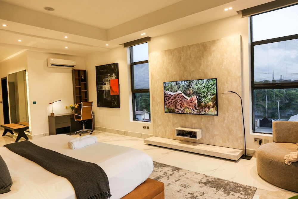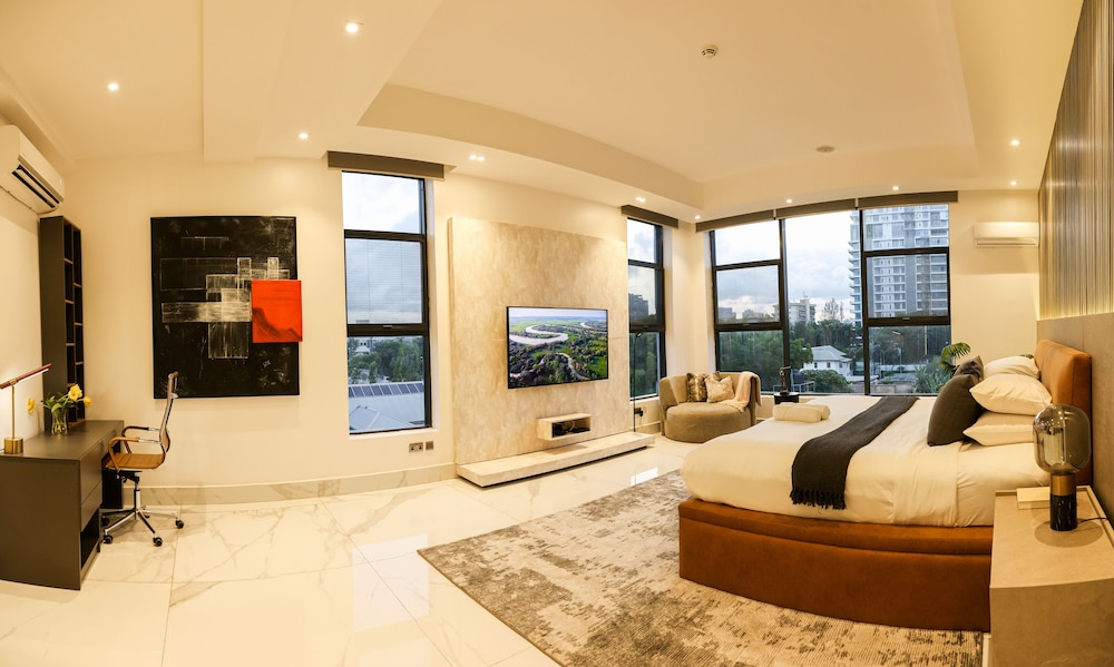 A stay at George Residence Banana Island places you in the heart of Lagos, within a 5-minute drive of Lagos Motor Boat Club and Lagos City Mall. This luxury apartment is 1.2 mi (1.9 km) from Tafawa Balewa Square and 1.4 mi (2.2 km) from Nigerian National Museum. Make yourself at home in one of the 7 individually decorated guestrooms, featuring kitchens with full-sized refrigerators/freezers and ovens. Your pillowtop bed comes with premium bedding. 65-inch Smart televisions with cable programming provide entertainment, while complimentary wireless internet access keeps you connected. Conveniences include safes and desks, and housekeeping is provided daily. Distances are displayed to the nearest 0.1 mile and kilometer.