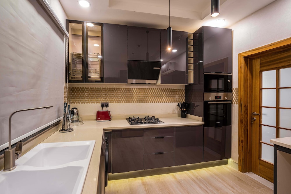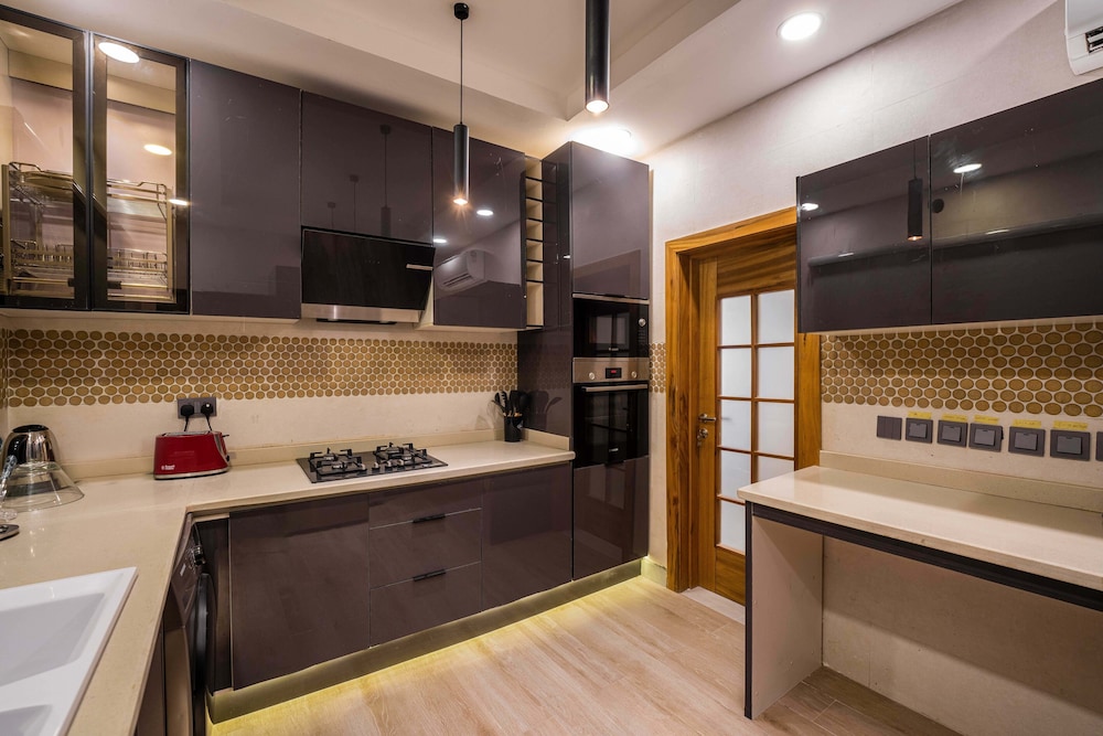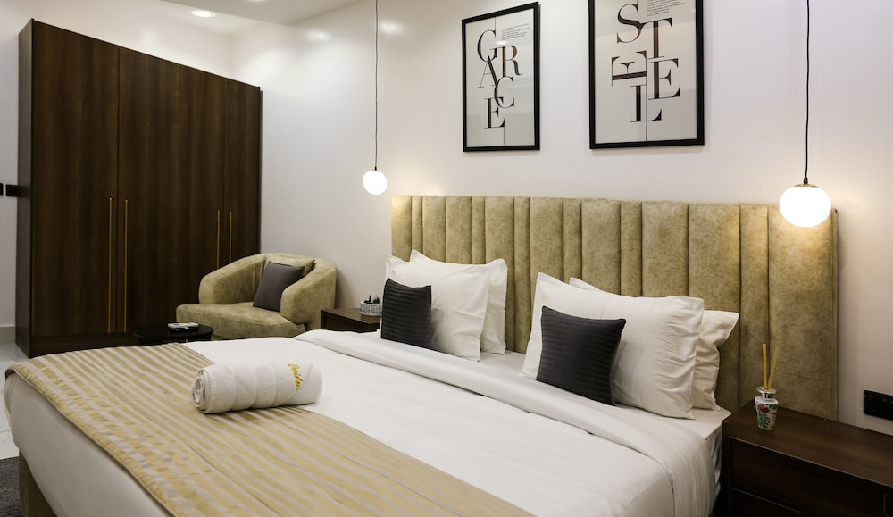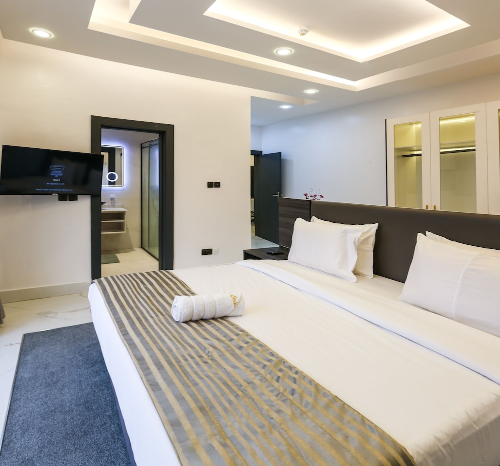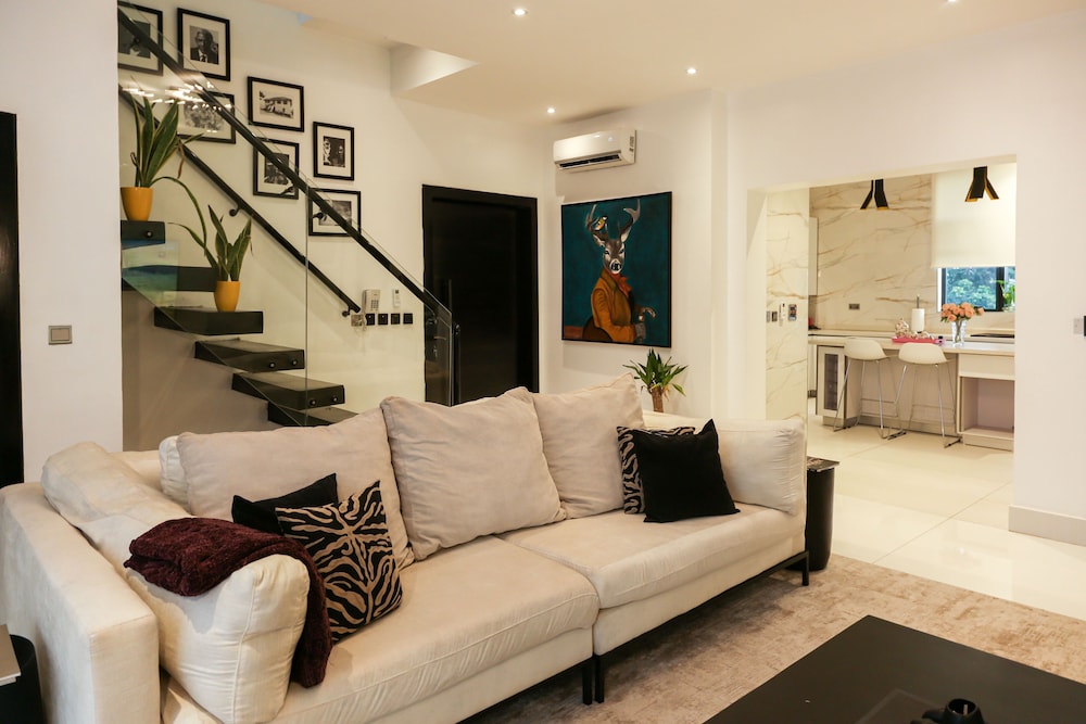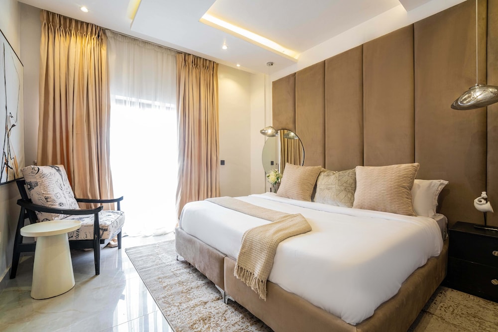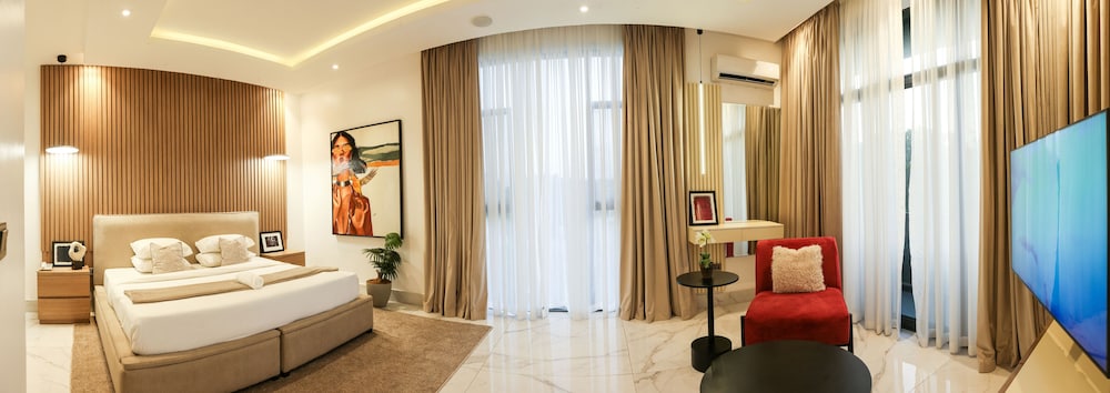 A stay at George Residence Banana Island places you in the heart of Lagos, within a 5-minute drive of Lagos Motor Boat Club and Lagos City Mall. This luxury apartment is 1.2 mi (1.9 km) from Tafawa Balewa Square and 1.4 mi (2.2 km) from Nigerian National Museum. Make yourself at home in one of the 7 individually decorated guestrooms, featuring kitchens with full-sized refrigerators/freezers and ovens. Your pillowtop bed comes with premium bedding. 65-inch Smart televisions with cable programming provide entertainment, while complimentary wireless internet access keeps you connected. Conveniences include safes and desks, and housekeeping is provided daily. Distances are displayed to the nearest 0.1 mile and kilometer.
