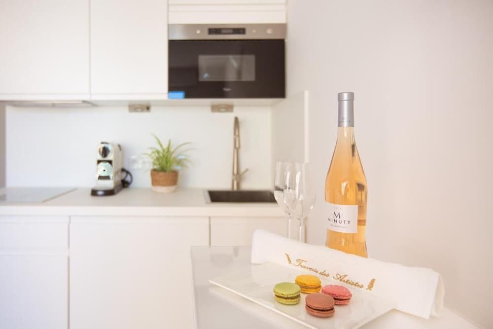 With a stay at Traverse des Artistes in Cannes (Cannes City Centre), you'll be a 5-minute walk from Cannes Harbour and 9 minutes by foot from Promenade de la Croisette. This residence is 0.6 mi (0.9 km) from Palace of Festivals and Conferences and 6 mi (9.7 km) from Juan-les-Pins Beach. Make yourself at home in one of the 18 guestrooms, featuring kitchenettes with microwaves and espresso makers. 32-inch LED televisions with cable programming provide entertainment, while complimentary wireless internet access keeps you connected. Conveniences include laptop-compatible safes and desks, and housekeeping is provided on request. Distances are displayed to the nearest 0.1 mile and kilometer.