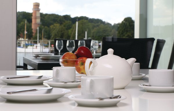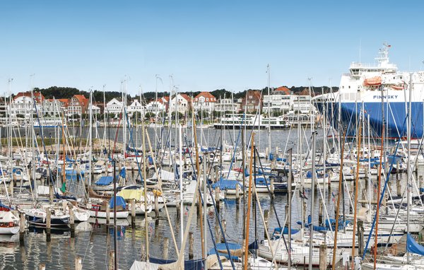 Spend your holiday on the Baltic Sea beach and enjoy the comfort, the view over the sailing harbour and the Trave estuary. You can enjoy the summer on the large terrace and catch glimpses of the Scandinavian ferries passing by. Enjoy a beautiful view of the Trave and the marina, take pleasure in the impressive ferries passing by and the gabled houses of Travemünde in the background.
