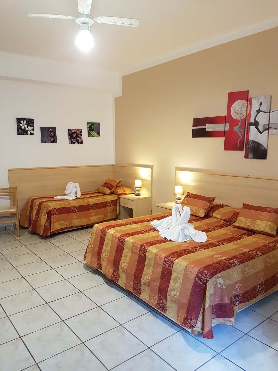 Simple, functional apartments. Towels are changed every day and bed linen every third day. Please note: The number of beds in the apartment is based on the number of people the booking is made for. Heating., Safe., Satellite-tv., telephone, bath tub/shower and wc.