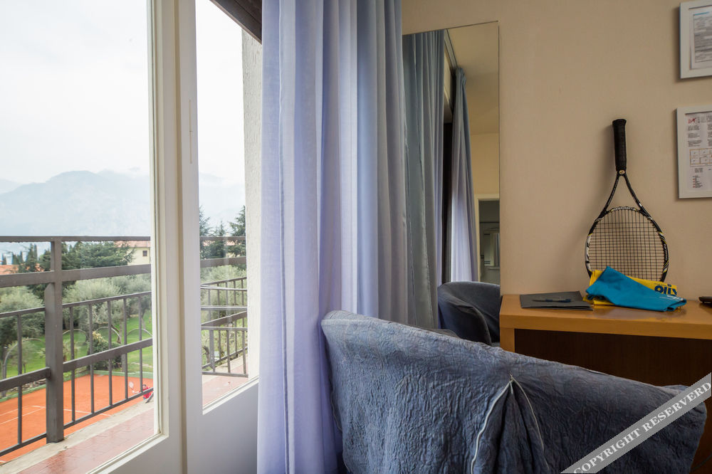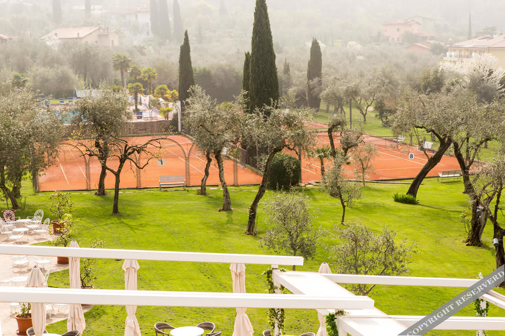 The hotel lies on the shores of Lake Garda at the foot of Monte Baldo, enclosed in a 30,000 m² park, with 9 tennis courts and a large heated pool.
