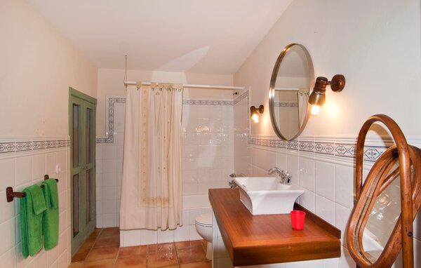 Each unit has its own unique charm. The ground floor flat Es Verd lives up to its name: shades of green wherever you look, bringing cheerfulness! Functionality and comfort take centre stage here and you have your own terrace for private outdoor time. From there, you can access the two bedrooms, each equipped with a 1.8 x 2 cm bed and awaiting the deep sleep of the Es Verd residents. The windows can be darkened with shutters. The sofa in the living room invites you to relax after long hours in the sun. You can eat together at the table, play a game or write a postcard - your friends at home are sure to be delighted! You are perfectly equipped to prepare your meals and spend a completely independent holiday here; the integrated kitchenette has 4 gas hobs, a fridge, a sink, a coffee machine, etc. The bathroom, also designed in Mallorcan style, offers natural light and a shower tray as well as an eye-catching antique washbasin, which can provide a special place to store cosmetics and jewellery. And if 80 m² of living space isn't enough for you, why not turn the entire property into your thriving outdoor living, dining and playroom?