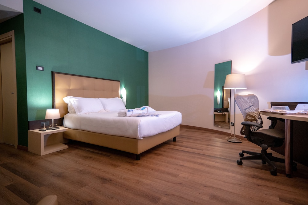 With a stay at UNA HOTELS MH Matera in Matera, you'll be in the suburbs, within a 10-minute drive of Sassi and the Park of the Rupestrian Churches and Convent of Sant'Agostino. This spa hotel is 5 mi (8 km) from San Giovanni Battista Church and 5.2 mi (8.3 km) from Museo Nazionale Ridola. Make yourself at home in one of the 132 air-conditioned rooms featuring flat-screen televisions. Your bed comes with down comforters and premium bedding. Complimentary wireless internet access keeps you connected, and satellite programming is available for your entertainment. Private bathrooms with shower/tub combinations feature rainfall showerheads and complimentary toiletries. Distances are displayed to the nearest 0.1 mile and kilometer.