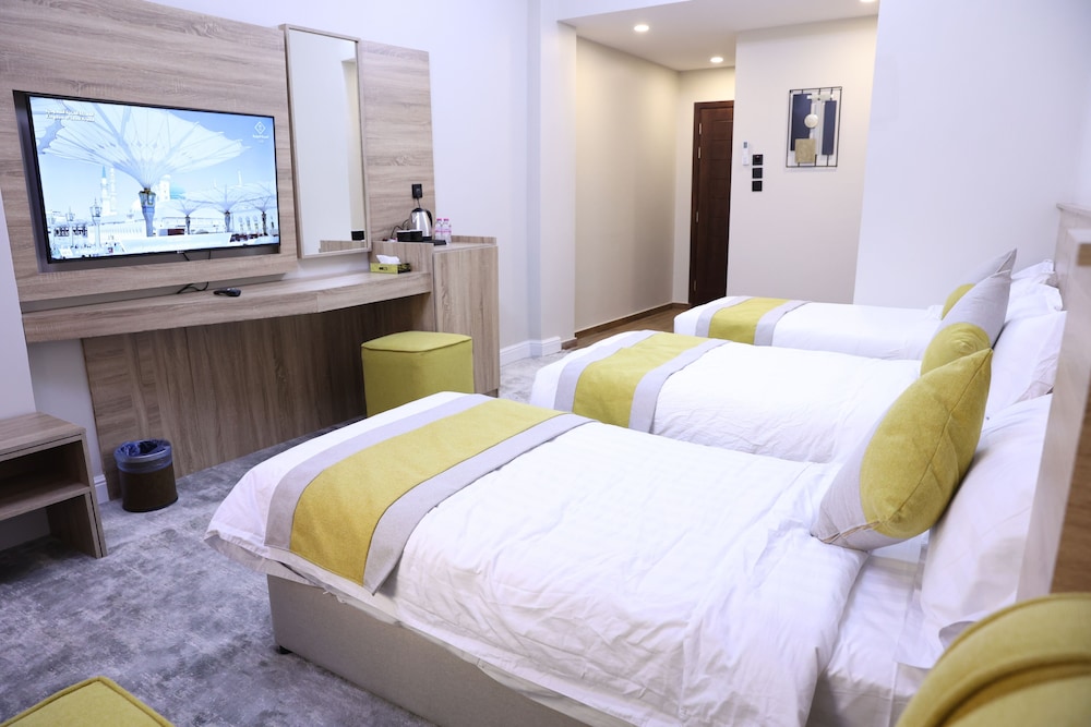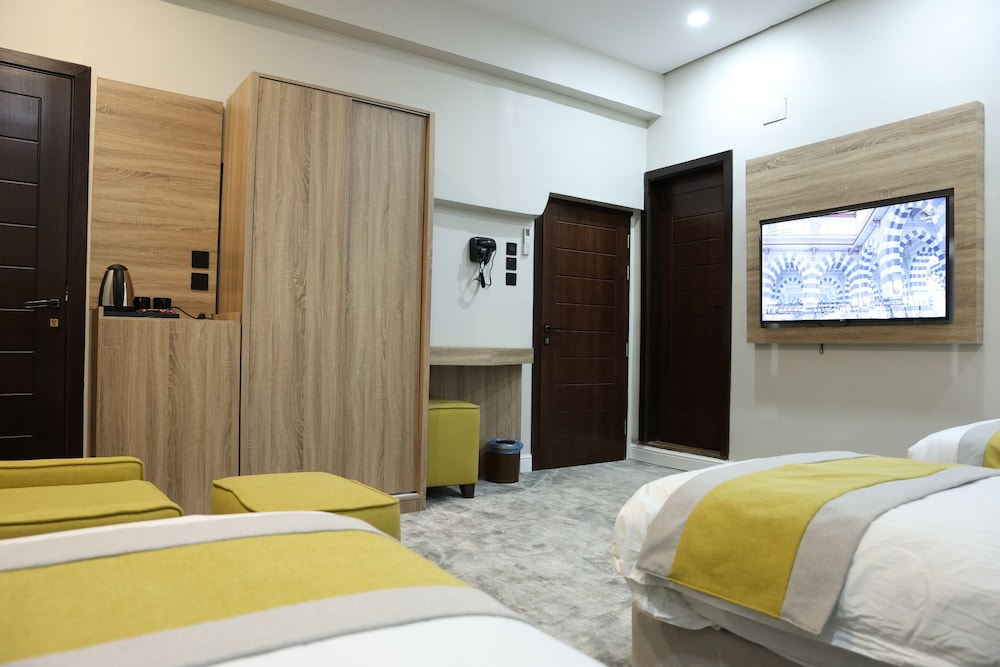 With a stay at MADINAH DELUXE Hotel, you'll be centrally located in Madinah, within a 5-minute drive of Prophet's Mosque and Masjid Al Ghamamah. This hotel is 0.8 mi (1.3 km) from New Bilal Market and 0.8 mi (1.3 km) from Bilal Ibn Rabah Mosque. Make yourself at home in one of the 15 guestrooms. Complimentary wireless internet access is available to keep you connected. Private bathrooms have hair dryers and slippers. Conveniences include irons/ironing boards, and housekeeping is provided once per stay. Distances are displayed to the nearest 0.1 mile and kilometer.