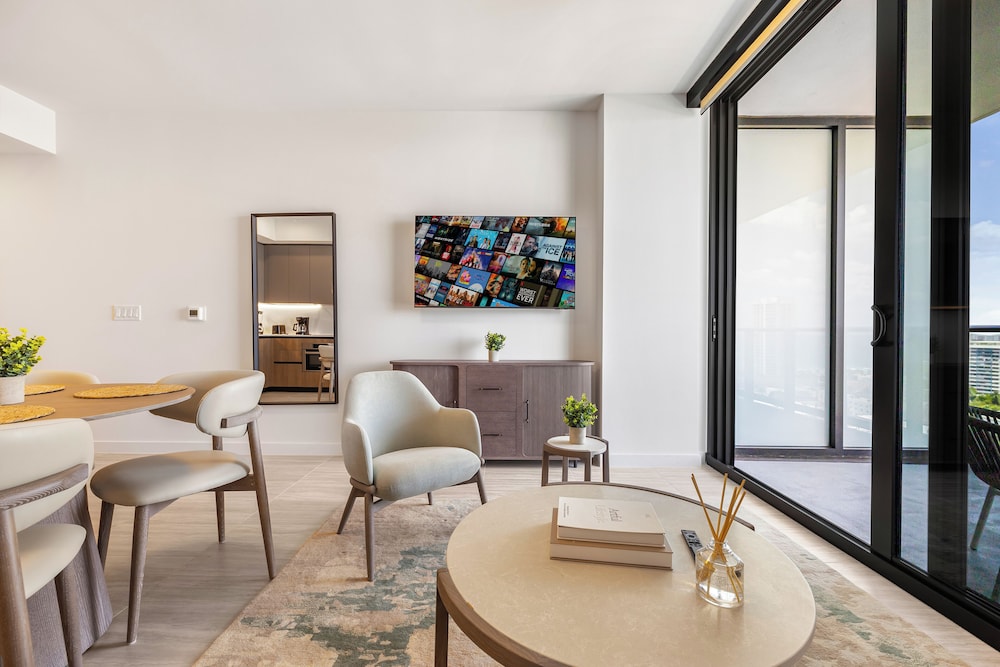 Featured amenities include express check-out and a 24-hour front desk. Head down to the water and enjoy a day at the private beach, or take advantage of other recreational amenities including an outdoor pool and a 24-hour fitness center. This apartment also features complimentary wireless internet access and a communal living room.- Covered valet parking fee: USD 40 per day