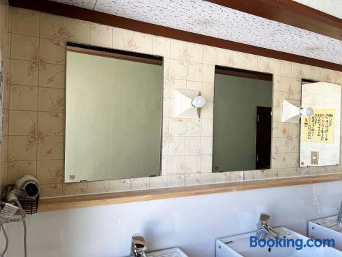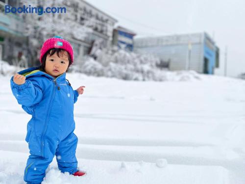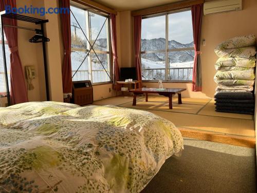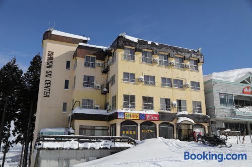 Located inside the Ishiuchi Maruyama Ski Resort, Ishiuchi Ski Center offers cozy guest rooms and a convenient ski-in ski-out access. Free Wi-Fi is available in the lobby. Ski Center Ishiuchi provides both carpeted rooms with Western beds and Japanese-style rooms fitted with tatami (woven-straw) flooring and traditional futon bedding. Heating facilities and a TV are included in all rooms. Bathroom and toilets are shared with other guests. Guests can request ski equipment rentals or use free luggage storage. Drinks vending machines are available on site. The public bath is open 24 hours. A breakfast buffet with Japanese and Western dishes is served in the dining rom. The property is a 40-minute drive from JR Ishiuchi Station.