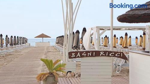 Set in Rimini, Hotel Mia Restaurant offers free Wi-Fi in public areas. It features a gourmet restaurant and rooms with a balcony. It is 1969 feet from Miramare Station. All rooms are fitted with tiled floors and simply decorated. Each is provided with air conditioning, a TV, and an private bathroom with hairdryer. Some units boast sea views. At the Mia Hotel breakfast is available daily in the restaurant. It consists of a rich buffet offering sweet and savory products. The restaurant serves both Mediterranean and international cuisine. Riminiterme Spa is just 1640 feet away. Rimini Miramare Airport is 0.6 mi away, while Riccione can be reached in 10 minutes by car.