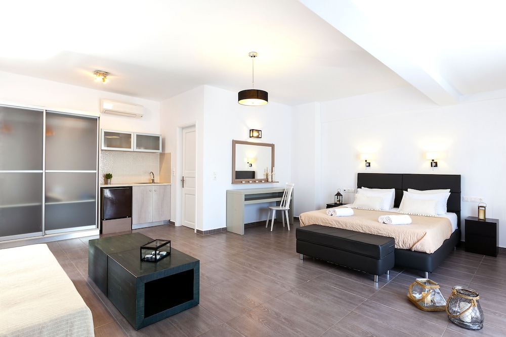 When you stay at Memories Beach Hotel in Santorini, you'll be on the beach, within a 10-minute drive of Kamari Beach and Santorini Caldera. This beach hotel is 6.2 mi (10 km) from Athinios Port and 5 mi (8 km) from Ancient Thira. Make yourself at home in one of the 26 air-conditioned rooms featuring refrigerators. Rooms have private furnished balconies. Complimentary wireless internet access keeps you connected, and satellite programming is available for your entertainment. Private bathrooms with showers feature complimentary toiletries and hair dryers. Distances are displayed to the nearest 0.1 mile and kilometer.